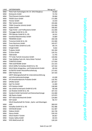 LAND UNTERNEHMEN Betrag in € NRW Think Tank Technologies Inh. Dr. Ulrich Berghaus 34.002 NRW thinkworks GmbH 73.733 NRW Third Element Aviation GmbH 59.664 NRW TIGGES-Zours GmbH 171.000 Vorabfassung - wird durch die lektorierte Fassung ersetzt NRW Timmer GmbH 15.919 NRW TML Technik GmbH 193.846 NRW TONA-Tonwerke Schmitz GmbH 152.000 NRW topbot GmbH 196.602 NRW Topp Förder- und Profilsysteme GmbH 152.000 NRW Torwegge GmbH & Co. KG 139.732 NRW TPR Fiberdur GmbH & Co. KG. 18.552 NRW transfluid Maschinenbau GmbH 14.864 NRW TRAWEMA GmbH 240.538 NRW Trenomat GmbH & Co. KG 152.000 NRW Trenz Electronic GmbH 143.477 NRW Treude & Metz GmbH & Co.KG 68.175 NRW trilogik GmbH 9.642 NRW Trubatec GmbH 101.264 NRW TS Elino GmbH 129.751 NRW TSM GmbH 11.755 NRW TTI Turbo Technik Innovation GmbH 130.056 NRW Tube Welding Tools Inh. Heinz-Dieter Teichert 25.344 NRW TUNATECH GmbH 117.050 NRW TWK-ELEKTRONIK GmbH 151.323 NRW Ulrich Oelfke Formenbau GmbH & Co. KG 147.542 NRW Ulrich Rotte Anlagenbau- und Fördertechnik GmbH 40.416 NRW ULTRATEX GmbH Vliesstoffverarbeitung 277.431 NRW UNIT Parktech AG 167.543 UNITY Aktiengesellschaft für Unternehmensführung NRW und Informationstechnologie 41.028 NRW UP Umweltanalytische Produkte GmbH 116.781 NRW UPONU GmbH 187.057 NRW Up2-Tec GmbH 11.400 NRW UTK Solution GmbH 138.949 NRW utp united-turned-parts GmbH & Co KG 69.558 NRW van Rickelen GmbH & Co. KG 167.152 NRW Vandurit GmbH Hartmetall und Diamantwerkzeuge 152.000 NRW VBI Plastics GmbH 137.872 NRW VDT Vakuumdichttechnik GmbH 124.864 NRW VEIT GmbH 96.717 VELCO Gesellschaft für Förder-, Spritz- und Siloanlagen NRW mbH 280.019 NRW Ventaflex GmbH & Co. KG 352.486 NRW VESTOCOR GmbH 312.987 NRW Viaboxx GmbH 161.739 NRW Vienco GmbH 526.319 NRW VISUS Health IT GmbH 84.957 NRW Vivatec Safety GmbH 44.315 NRW VIVE-MedConsult UG 128.524 Seite 52 von 197