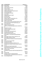 LAND UNTERNEHMEN Betrag in € NRW VOLAS GmbH 133.000 NRW Vollrath GmbH 4.400 NRW Volmer Engineering GmbH 327.009 NRW Volterion GmbH 117.735 Vorabfassung - wird durch die lektorierte Fassung ersetzt NRW vombaur GmbH & Co. KG 254.140 NRW VOMO Leichtbautechnik GmbH & Co.KG 169.739 NRW VR Dichtungen GmbH 144.806 NRW VSS-Umwelttechnik GmbH 139.596 NRW vtrace Gmbh 69.721 NRW Waagenbau Dohmen GmbH 19.002 NRW Wachtel GmbH 113.498 NRW Waco-Plast GmbH 132.905 NRW Wallstein Ingenieur-Gesellschaft m.b.H. 269.214 NRW WALTHER Faltsysteme GmbH 344.595 NRW Walther Flender GmbH 16.301 NRW WAT-membratec water technology GmbH & Co.KG 146.045 WDB Systemtechnik GmbH Maschinenbau und NRW Steuerungstechnik 22.338 NRW Wegener International GmbH 170.492 Wehrmann Holzbearbeitungsmaschinen GmbH & Co. NRW KG 247.372 NRW WeissBioTech GmbH 33.397 NRW Wellmann Anlagentechnik GmbH 96.114 NRW Welotec GmbH 152.000 NRW Wenaroll GmbH Tools and Systems 150.817 NRW Wendling Elektronik GmbH 180.024 NRW WENZ Kunststoff GmbH & Co. KG 220.000 Werkzeugbau + Kunststoffverarbeitung Mayweg NRW GmbH 1.263 NRW Werkzeugbau Jedig und Heyns GmbH & Co. KG 219.657 NRW Werkzeugbau Wolframm GmbH 315.040 Werner Kuhlmann Kistenbau & Industrieverpackung NRW GmbH 152.000 NRW Werner Vakuumsauger GmbH 144.469 NRW Westaflexwerk GmbH 463.152 NRW Westdeutsche Dochtfabrik GmbH & Co. KG. 250.576 Westdeutscher Drahtseil-Verkauf Dolezych GmbH & NRW Co. KG 161.579 NRW Westdeutscher Metall-Handel GmbH 60.000 Westenberg Wind Tunnels & Measurement Systems; NRW Inhaber: John B. Westenberg 122.462 NRW Westeria GmbH 228.980 Westfälische Lokomotiv-Fabrik Reuschling GmbH & Co. NRW KG 108.736 NRW Westhoff GbR 60.778 NRW Weyergans High Care Aktiengesellschaft 78.854 WF-Maschinenbau und Blechformtechnik GmbH & Co. NRW Kommanditgesellschaft 115.357 Seite 53 von 197