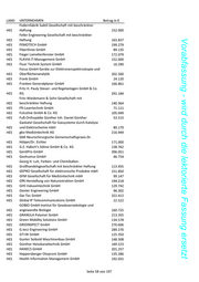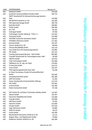 LAND UNTERNEHMEN Betrag in € HES rhd instruments GmbH & Co. KG 28.314 HES Rheinfähre Maul GmbH 26.117 HES Rinke GmbH 323.283 HES RK Metalltechnik GmbH & Co. KG 328.692 Vorabfassung - wird durch die lektorierte Fassung ersetzt HES robot-machining GmbH 208.305 HES RSV Romanski Sensor- und Verstärkertechnik GmbH 19.631 HES Rudolf Bauch Maschinenbau GmbH & Co. KG 314.123 HES Rühl Puromer GmbH 206.451 HES Sachverständigenbüro Leitsch GmbH 163.333 HES Sälzer Gesellschaft mit beschränkter Haftung 33.249 HES Sattler KunststoffWerk GmbH 192.108 SBI Schreiber, Brand und Partner Ingenieurgesellschaft HES mbH 150.845 HES scanware electronic GmbH 288.275 HES Schmoll Maschinen GmbH 103.408 HES Schneider GmbH & Co. KG 121.446 HES Schoder GmbH 217.060 HES schubwerk GmbH 48.884 HES SchuF-Armaturen und Apparatebau GmbH 108.143 HES Schweizer ideen-Werkstatt Inh. Iris Schweizer 123.744 HES Science & Motion Sports GmbH 36.074 HES Secarna Pharmaceuticals GmbH & Co. KG 120.898 HES Seetech GmbH 129.182 HES Sehring Beton GmbH & Co. KG 183.162 HES Seibert GmbH 57.002 HES Seitz GmbH 177.000 HES Sekels GmbH 339.578 HES Selco Wirkstoffe Vertriebs GmbH 343.661 HES Sensortherm GmbH 134.085 HES SenVac GmbH Anlagenbau und Komponenten 117.658 HES sera ComPress GmbH 52.620 HES Servomold GmbH & Co. KG 153.599 HES SIKA Dr. Siebert & Kühn GmbH & Co. KG 114.000 HES SimPlan AG 83.644 HES SINOVO health solutions GmbH 144.136 HES Skill Software Gesellschaft mit beschränkter Haftung 69.405 HES Skoberne Schornsteinsysteme GmbH 161.411 HES Smartrplace GmbH 224.620 HES smartTec 127.160 HES soft2tec GmbH 478.083 HES Solidtec GmbH 409.211 HES Soundperience GmbH 231.115 HES spannverbund GmbH 301.666 HES Spies Lasertechnik GmbH 44.937 HES Steinhardt Gesellschaft mit beschränkter Haftung 142.861 HES Stephan Schmidt KG 104.929 HES sterna biologicals GmbH & Co. KG 19.481 HES Stock Maschinenbau GmbH 186.200 HES Studio Wagner:Design 120.673 Seite 63 von 197