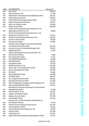 LAND UNTERNEHMEN Betrag in € HES Heer GmbH 108.472 HES HEESS GmbH & Co KG 37.169 HES Heidenbluth, Fachhandel für Schweißgeräte GmbH 244.641 HES Heiland electronic GmbH 160.144 Vorabfassung - wird durch die lektorierte Fassung ersetzt HES Heinz Stöckel Werkzeugmaschinen GmbH 75.724 HES Heitec-Heisskanaltechnik GmbH 153.817 HES Held Laser Systems GmbH 216.856 HES Helmut Hund GmbH 106.954 Herbert Arnold, Glastechnischer Maschinen- und HES Apparatebau GmbH & Co. KG 48.688 Herbert Arnold Glastechnischer Maschinen- und HES Apparatebau GmbH & Co. KG 136.312 HES Herborner Pumpentechnik GmbH & Co KG 153.361 HES Hermann Träxler GmbH 89.304 HES HessenLeinen GmbH 119.399 Hessische Schmelztiegel und Schamottsteinfabrik HES Conrad Liphard & Söhne GmbH 307.345 HES Hessisches Institut für Baustoffprüfungen GbR 174.925 HES Hilgenberg GmbH 23.283 Hilscher Gesellschaft für Systemautomation mit HES beschränkter Haftung 8.480 HES Hirsch Elektronik GmbH 77.671 HES HKL ENERGIEANLAGEN AG 48.460 HES HORCHER GmbH 152.000 HES housefabrik GmbH 66.474 HES HOWIAL GmbH & Co. KG 152.000 HES Hürner Luft- und Umwelttechnik GmbH 133.000 HES Hürner Schweißtechnik GmbH 291.002 HES IAS GmbH 59.935 HES IBB TECHNOLOGY GmbH 157.088 HES iCOGNIZE GmbH 200.557 HES ICS IT-Logistik Systeme GmbH 148.481 HES IEL Elektronik-Systeme GmbH 171.000 HES IETEC Orthopädische Einlagen GmbH Produktions KG 236.527 HES IGK Isolierglasklebstoffe GmbH 174.121 IKN Ingenieur-Planungs-Gesellschaft mit beschränkter HES Haftung König-Nieder 26.828 HES ILLERT GmbH & Co. KG 142.232 HES imagine computation GmbH 321.021 HES imagine structure GmbH 175.509 HES Immundiagnostik AG 222.259 Imtradex Hör- und Sprechsysteme Gesellschaft mit HES beschränkter Haftung 67.563 HES Industrial Science GmbH powered by IAV 142.565 HES industrialpartners GmbH 64.821 HES Industriefärberei Plack GmbH & Co. KG 85.500 HES Infranor GmbH 122.939 HES InfraSolution AG 117.975 HES ingenia Dienstleistung Beratung Management GmbH 68.522 Seite 59 von 197