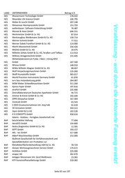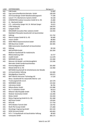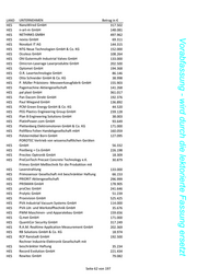 LAND UNTERNEHMEN Betrag in € HES LINK GmbH 15.662 HES Lipp Laserschweißtechnik Betriebs- GmbH 149.434 HES LKS Kronenberger GmbH Metallveredelungswerk 77.299 HES Loesch T-P-L Mechatronic Systems GmbH 56.528 Vorabfassung - wird durch die lektorierte Fassung ersetzt HES LÖWENSTEIN medical innovation GmbH & Co. KG 25.000 HES LS - Mechanik GmbH 89.235 HES LTZ – Lehrinstitut Zanger Inh. Dr. Michael Zanger 70.672 HES LYNX Holding AG 148.974 HES Lytegate GmbH 169.000 HES MAILINGER innovative fiber solutions GmbH 132.933 Malzfabrik Rheinpfalz Gesellschaft mit beschränkter HES Haftung 151.742 HES March Pumpen GmbH & Co. KG 94.689 HES maxcrc GmbH 88.883 HES MAXI-PRESS Elastomertechnik GmbH 109.403 HES MB Maschinen GmbH 202.905 MBA-Automation Gesellschaft mit beschränkter HES Haftung 99.526 HES MECHATRON GmbH 263.304 MedCom Gesellschaft für medizinische HES Bildverarbeitung mbH 33.727 HES medDV GmbH 112.678 HES MEDIQON Group AG 152.000 HES Meissner AG Modell- und Werkzeugfabrik 153.506 Mercodor GmbH Sondermaschinenbau HES Kommanditgesellschaft 201.000 HES Metak GmbH & Co. KG 132.960 METAKEM Gesellschaft für Schichtchemie der Metalle HES mit beschränkter Haftung 152.000 HES Metallgießerei Stauß KG 104.671 HES MHT Mold & Hotrunner Technology AG 17.220 Micor, Gesellschaft für industrielle Wärme- und HES Trocknungstechnik m.b.H. 167.279 HES MICROBOX GmbH 219.282 HES mikromess GmbH 96.781 HES Milenia Biotec GmbH 233.986 HES M.I.T e-Solutions GmbH 60.613 HES Mitterle Fußorthopädie GmbH 14.786 HES Modular Automation GmbH 116.490 HES Motec GmbH 154.204 HES Motus Engineering GmbH & Co. KG 352.408 HES MSTVision GmbH 129.826 HES MTG AG 117.754 HES MTG Medizin-Technik Göhl 118.782 HES Multi-Plot Europe GmbH 171.000 HES Mundinger Engineering GmbH 653.103 HES M2M Germany GmbH 443.843 HES N O L T A Gesellschaft mit beschränkter Haftung 98.403 HES nanosystec GmbH 300.171 Seite 61 von 197