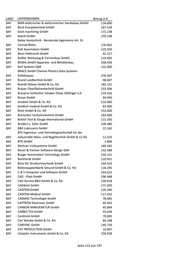 LAND UNTERNEHMEN Betrag in € BAY BMR elektrischer & elektronischer Gerätebau GmbH 116.600 BAY Bock Energietechnik GmbH 187.534 BAY bock machining GmbH 172.138 BAY boeck GmbH 150.238 Boley Geotechnik - Beratende Ingenieure Inh. Dr. BAY Conrad Boley 170.062 BAY Boll Automation GmbH 219.320 BAY Bonn Elektronik GmbH 42.317 BAY Boßler Werkzeug & Formenbau GmbH 119.403 BAY BOWA GmbH Apparate- und Behälterbau 358.436 BAY Bo4 Systems GbR 131.000 BRACE GmbH Chemie-Plastics-Data Systems- BAY Esthétiques 370.207 BAY Brand Landtechnik GmbH 98.607 BAY Brandt Hülsen GmbH & Co. KG 182.151 BAY Bräuer Oberflächentechnik GmbH 223.304 BAY Brauerei Schleicher Inhaber Oskar Döllinger e.K. 133.416 BAY Braun GmbH 94.456 BAY bredent GmbH & Co. KG 510.960 BAY bredent medical GmbH & Co. KG 65.900 BAY Breit GmbH & Co. KG 152.000 BAY Bremicker Verkehrstechnik GmbH 183.669 BAY Bristol Tool & Gauge International GmbH 115.350 BAY Brüderl u. Sohn GmbH 109.480 BAY B&S Lubricants GmbH 22.162 BTE Ingenieur- und Vertriebsgesellschaft für die BAY industrielle Mess- und Regeltechnik GmbH & Co KG 11.525 BAY BTR GmbH 1.964 BAY Büchner Lichtsysteme GmbH 189.582 BAY Büren & Partner Software-Design GbR 142.468 BAY Burger Automation Technology GmbH 150.221 BAY Burkhardt GmbH 110.921 BAY Büro für Strukturmechanik GmbH 164.324 BAY Büttenpapierfabrik Gmund GmbH & Co. KG 118.295 BAY C & S Computer und Software GmbH 164.622 BAY CAD - Plast GmbH 296.448 BAY CAD Service B&H GmbH & Co. KG 190.918 BAY CADdent GmbH 171.920 BAY CADFEM GmbH 120.240 BAY CADFEM Medical GmbH 117.632 BAY CAEMAX Technologie GmbH 78.485 BAY CAPTRON Electronic GmbH 60.453 BAY CARBON MANUFAKTUR GmbH 45.894 BAY CARBO-TEX GmbH 55.628 BAY CardiLink GmbH 70.000 BAY Carl Weiske GmbH & Co. KG 84.108 BAY CARSYNC GmbH 145.720 BAY CAT PRODUCTION GmbH 10.007 BAY Catalytic Instruments GmbH & Co. KG 156.918 Seite 113 von 197