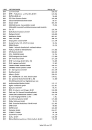 LAND UNTERNEHMEN Betrag in € BAY cxomni GmbH 180.503 BAY DARI - Produktions- und Handels GmbH 147.232 BAY DATA AHEAD AG 50.662 BAY DC Vision Systems GmbH 164.348 BAY Decker Verfahrenstechnik GmbH 88.977 BAY deepc GmbH 385.294 BAY DEKEMA Dental - Keramiköfen GmbH 79.092 DEKUMED Kunststoff und Maschinenvertrieb GmbH & BAY Co. KG 156.756 BAY Delta System Solutions GmbH 150.570 BAY Deltacor GmbH 126.000 BAY denkbares GmbH 665.541 BAY Dent One GbR 208.559 BAY Deployables Cubed GmbH 147.375 BAY design!struktur Inh. Ulrich Bernatzki 18.152 BAY DESKO GmbH 95.252 DeWe - Brünofix Gesellschaft mit beschränkter BAY Haftung Fabrik für Metallchemie 271.066 BAY DFC Systems GmbH 330.883 BAY DFS - DIAMON GmbH 92.784 BAY DGS Drahtgestricke GmbH 171.000 BAY DH electronics GmbH 154.180 BAY DHD Technology GmbH & Co. KG 93.385 BAY DHG Engineering GmbH 37.985 BAY DHybrid Power Systems GmbH 299.319 BAY DHYBRID Power Systems GmbH 45.321 BAY DI - Die Ingenieure GmbH 247.379 BAY DiaCCon GmbH 269.978 BAY dibauco GmbH 330.474 BAY DIE FUSSÄRZTIN - Dr. med. Kerstin Lauer 170.012 BAY Die Spinnerei Neuhof GmbH & Co. KG 33.400 DIG:ED Gesellschaft zur Digitalisierung von BAY audiovisuellen Medien GmbH 125.115 BAY digital workbench gmbh 215.951 BAY Digitalwerk GmbH 95.714 BAY DILO Armaturen und Anlagen GmbH 112.068 BAY Dipl.-Ing. (FH) Konrad Schmidling GmbH 196.436 BAY DIRMEIER Schanktechnik GmbH & Co KG 143.334 BAY di-soric Imaging GmbH & Co. KG 3.852 BAY DLS Schmiersysteme GmbH 171.000 BAY Dlubal Software GmbH 70.741 BAY DMF Deutsche Modulhaus Fabrik GmbH 151.985 BAY DNE GmbH 98.001 BAY DOFA GmbH 104.469 BAY Domatec GmbH 814.071 BAY DONAT IT GmbH 48.104 BAY Dosimetrics GmbH 84.130 BAY dotlux GmbH 146.980 BAY Dötsch Elektromaschinen- Elektrotechnik GmbH 91.199 Seite 115 von 197