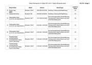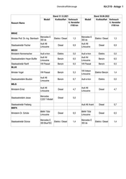 Weitere Fahrzeuge die im 2. Halbjahr 2021 und im 1. Halbjahr 2022 genutzt wurden KA 2110 - Anlage 3 zusätzliche Ressort /Name Modell Zeitraum Bemerkungen Kosten Staatskanzlei Ministerin und Chefin der 1 Mercedes E 220 02.05.2022-04.05.2022 Abmeldung / Zulassung Nachfolgefahrzeug 0,0 Staatskanzlei Schneider Übergangsfahrzeug - wurde zu den gleichen Audi A6 Avant design 2 Staatssekretär Dr. Grimm 21.12.2021- Konditionen zur Verfügung gestellt wie 0,0 50 TFSI e quattro Hauptfahrzeug Nutzung DKfz Regierungssprecher (Dienstreise nach Polen / Übergangsfahrzeug in der 3 Staatssekretär Dr. Grimm Audi A6 Avant 27.06.2022 0,0 Werkstatt / Fahrt mit Werkstattersatzfahrzeug ins Ausland nicht möglich) 4 Staatssekretär Dr. Grimm Audi A8 Limousine 28.06.2022 Werkstattersatzfahrzeug 0,0 5 Staatssekretärin Dr. Jahns-Böhm Mercedes C 220 T 20.09.2021-21.09.2021 Abmeldung / Zulassung Nachfolgefahrzeug 0,0 6 Regierungssprecher Mercedes E 220 15.11.2021-25.11.2021 Abmeldung / Zulassung Nachfolgefahrzeug 0,0 MdFE 6 Ministerin Lange BMW 540d 01.09.2021-02.09.2021 Werkstattersatzfahrzeug 0,0 7 Ministerin Lange Mercedes E 220 21.10.2021-21.10.2021 Werkstattersatzfahrzeug 0,0 8 Ministerin Lange Mercedes E 220 21.05.2022-24.05.2022 Werkstattersatzfahrzeug 0,0 9 Ministerin Lange BMW 540d 17.11.2021-18.11.2021 Werkstattersatzfahrzeug 0,0 MIL 10 Staatssekretär Genilke Audi A8 Limousine 10.03.2022-11.03.2022 Werkstattersatzfahrzeug 0,0 MWAE 11 Staatssekretär Fischer Audi Q5 23.11.2021-24.11.2021 Werkstattersatzfahrzeug 0,0 MSGIV 12 Ministerin Frau Nonnemacher Mercedes E 220 26.10.2021-28.10.2021 Werkstattersatzfahrzeug aus Fahrzeugpool 0,0 13 Ministerin Frau Nonnemacher Audi A8 Limousine 27.12.2021-28.12.2021 Werkstattersatzfahrzeug 0,0 14 Ministerin Frau Nonnemacher Mercedes E 220 17.06.2022-20.06.2022 Abmeldung / Zulassung Nachfolgefahrzeug 0,0 MLUK 15 Minister Vogel Mercedes E 220 07.12.2021-09.12.2021 Werkstattersatzfahrzeug 0,0
