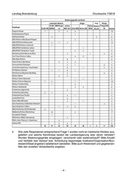 Landtag Brandenburg Drucksache 7/5818 Beatmungsgeräte vom Bund Löwenstein Medical Dräger Fritz Philips ELISA VENTIlogic prisma Oxylog Stephan Trilogy EVO Empfänger ELISA 500 800/600 LS VENT 50-C Evita V600 Savina 300 VE300 Eve IN O2 Summe Ruppiner Kliniken 7 2 4 5 18 Kreiskrankenhaus Prignitz 1 1 Oberhavel Kliniken 4 2 6 KMG Klinikum Mitte Standort Pritzwalk 5 5 ASKLEPIOS Klinik Birkenwerder 3 7 2 12 ASKLEPIOS Klinikum Uckermark 1 1 ASKLEPIOS Fachklinikum Lübben 1 1 ASKLEPIOS Fachklinikum Teupitz 4 4 8 Brandenburg Klinik Bernau bei Berlin 3 1 2 6 Carl-Thiem-Klinikum Cottbus 4 17 21 Elbe-Elster-Klinikum 6 6 Helios Klinikum Bad Saarow 2 3 2 7 Immanuel Klinik Rüdersdorf 2 1 2 5 Johanniter-Krankenhaus Treuenbrietzen 6 1 2 9 KH Märkisch-Oderland 1 1 6 1 9 Klinik Ernst von Bergmann Bad Belzig 3 3 6 Klinikum Barnim 2 4 6 Klinikum Dahme-Spreewald 1 1 2 Klinikum Ernst von Bergmann 7 4 7 18 Klinikum Frankfurt (Oder) 1 2 3 Klinikum Niederlausitz 3 3 6 Krankenhaus Angermünde 2 2 Krankenhaus Spremberg 2 1 3 Kreiskrankenhaus Prenzlau 3 1 4 Lausitz Klinik Forst 3 3 Naemi-Wilke-Stift Guben 3 1 4 Sana Krankenhaus Gottesfriede Woltersdorf 1 2 3 Sana-Herzzentrum Cottbus 1 3 3 7 Städt. Krankenhaus Eisenhüttenstadt 2 2 Städtisches Klinikum Brandenburg 15 2 17 St-Josefs-KH Potsdam 1 1 REHA Klinik VAMED Hohenstücken 2 2 REHA „Hoher Fläming“ im Oberlinhaus 3 3 Ukraine-Hilfe 5 4 9 18 31 23 59 43 28 1 2 11 216 4. Wie viele Respiratoren entsprechend Frage 1 wurden nicht an märkische Kliniken aus- geliefert und welche Kenntnisse besitzt die Landesregierung über deren Verbleib? Wurden Beatmungsgeräte eingelagert, verschenkt oder weiterverkauft? Bitte Anzahl und Verbleib (bei Verkauf bzw. Schenkung begünstigte Institution/Organisation/Bun- desland/Staat angeben) tabellarisch darstellen. Bitte auch Warenwert und gegebenen- falls den erzielten Verkaufserlös angeben. -4-