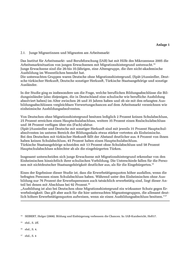 Anlage 1 2.1. Junge Migrantinnen und Migranten am Arbeitsmarkt Das Institut für Arbeitsmarkt- und Berufsforschung (IAB) hat mit Hilfe des Mikrozensus 2005 die 14 Arbeitsmarktsituation von jungen Erwachsenen mit Migrationshintergrund untersucht. Junge Erwachsene sind die 26-bis 35-Jährigen, eine Altersgruppe, die ihre nicht-akademische Ausbildung im Wesentlichen beendet hat. Die untersuchten Gruppen waren Deutsche ohne Migrationshintergrund, (Spät-)Aussiedler, Deut- sche türkischer Herkunft, Deutsche sonstiger Herkunft, Türkische Staatsangehörige und sonstige Ausländer. In der Studie ging es insbesondere um die Frage, welche beruflichen Bildungsabschlüsse die Bil- dungsinländer (also diejenigen, die in Deutschland eine schulische wie berufliche Ausbildung absolviert haben) im Alter zwischen 26 und 35 Jahren haben und ob sie mit den erlangten Aus- bildungsabschlüssen vergleichbare Verwertungschancen auf dem Arbeitsmarkt verzeichnen wie einheimische Ausbildungsabsolventen. Von Deutschen ohne Migrationshintergrund besitzen lediglich 2 Prozent keinen Schulabschluss, 25 Prozent erreichen einen Hauptschulabschluss, weitere 35 Prozent einen Realschulabschluss und 38 Prozent verfügen über ein (Fach)-abitur. (Spät-)Aussiedler und Deutsche mit sonstiger Herkunft sind mit jeweils 31 Prozent Hauptschul- absolventen im unteren Bereich der Bildungsskala etwas stärker vertreten als Einheimische. Bei den Deutschen mit türkischer Herkunft fällt der Abstand deutlicher aus. 8 Prozent von ihnen haben keinen Schulabschluss, 45 Prozent haben einen Hauptschulabschluss. Türkische Staatsangehörige schneiden mit 13 Prozent ohne Schulabschluss und 58 Prozent Hauptschulabschluss schlechter ab als die eingebürgerten Türken. Insgesamt unterscheiden sich junge Erwachsene mit Migrationshintergrund erkennbar von den Einheimischen hinsichtlich ihrer schulischen Vorbildung. Die Unterschiede fallen für die Perso- 15 nen mit nichtdeutscher Staatsangehörigkeit deutlicher aus, als für die Eingebürgerten. Eines der Ergebnisse dieser Studie ist, dass die Erwerbstätigenquoten höher ausfallen, wenn die befragten Personen einen Schulabschluss haben. Während unter den Einheimischen ohne Aus- bildung nur 76 Prozent der Erwerbspersonen auch tatsächlich erwerbstätig sind, liegt dieser An- 16 teil bei denen mit Abschluss bei 92 Prozent. „Ausbildung ist also bei Deutschen ohne Migrationshintergrund ein wirksamer Schutz gegen Er- werbslosigkeit. Das gilt aber auch für die hier untersuchten Migrantengruppen, die allesamt deut- 17 lich höhere Erwerbstätigenquoten aufweisen, wenn sie einen Ausbildungsabschluss besitzen.“ 14 SEIBERT, Holger (2008). Bildung und Einbürgerung verbessern die Chancen. In: IAB-Kurzbericht, Heft17. 15 ebd., S. 2ff. 16 ebd., S. 4. 17 ebd., S. 4