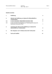 Wissenschaftliche Dienste Sachstand Seite 3 WD 8 - 3000 - 007/17 Inhaltsverzeichnis 1. Einführung 4 2. Ziele bei der Einführung von Quoten für Biokraftstoffe im Verkehrssektor 5 2.1. In der EU-Richtlinie 2003/30/EG formulierte Ziele 6 2.2. In der EU-Richtlinie 2009/28/EG formulierte Ziele 7 2.3. In der deutschen Gesetzgebung zur Umsetzung der beiden EU- Richtlinien formulierte Ziele 7 3. Umsetzung der Ziele seit der Einführung von Quoten für Biokraftstoffe im Verkehrssektor 9 4. Die Akzeptanz von E 10-Benzin durch die Verbraucher 11 5. Fazit und Ausblick 15