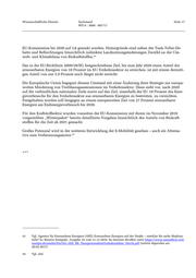 Wissenschaftliche Dienste Sachstand Seite 17 WD 8 - 3000 - 007/17 EU-Kommission bis 2030 auf 3,8 gesenkt werden. Hintergründe sind neben der Tank-Teller-De- batte und Befürchtungen hinsichtlich indirekter Landnutzungsänderungen Zweifel an der Um- 41 welt- und Klimabilanz von Biokraftstoffen. Das in der EU-Richtlinie 2009/28/EG festgeschriebene Ziel, bis zum Jahr 2020 einen Anteil der erneuerbaren Energien von 10 Prozent im EU-Verkehrssektor zu erreichen, ist mit einem derzeiti- gen Anteil von nur 5,9 Prozent noch längst nicht erreicht. Die Europäische Union begegnet diesem Umstand mit einer Änderung ihrer Strategie zur europa- weiten Minderung von Treibhausgasemissionen im Verkehrssektor. Diese sieht vor, nach 2020 auf die verbindlichen nationalen Ziele sowie auf das Ziel, innerhalb der EU 10 Prozent des Ener- gieverbrauchs für den Verkehrssektor aus erneuerbaren Energien zu bestreiten, zu verzichten. Festgehalten werden soll hingegen an einem europaweiten Ziel von 27 Prozent erneuerbarer Energien am Endenergieverbrauch bis 2030. Für den Kraftstoffsektor wurden vonseiten der EU-Kommission mit ihrem im November 2016 vorgestellten „Winterpaket“ bereits detaillierte Vorgaben hinsichtlich des Anteils von Biokraft- stoffen für die Zeit ab 2021 gemacht. Großes Potenzial wird in der weiteren Entwicklung der E-Mobilität gesehen – auch als Alterna- 42 tive zum Verbrennungsmotor. *** 41 Vgl. Agentur für Erneuerbare Energien (AEE): Erneuerbare Energien auf der Straße – startklar für mehr Marktan- teile? In: Renews kompakt, Ausgabe 34 vom 21.12.2016. Im Internet abrufbar unter https://www.unendlich-viel- energie.de/media/file/541.AEE_RK_EnergiewendeimVerkehrssektor_Dez16.pdf [zuletzt abgerufen am 20.02.2017] 42 Vgl. ebd.