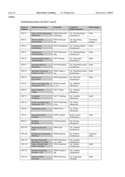 Seite 10 Bayerischer Landtag · 16. Wahlperiode Drucksache 16/8127 Anlage Notfallstationsliste für KKI I und II Sektor u. Objektsbezeichnung Gemeinde Landkreis/ Bemerkungen Nummer Regierungsbezirk NfS 1/1 Schul- und Freizeitzentrum 84066 Mallersdorf- Lkr. Straubing-Bogen beübt Mallersdorf Pfaffenberg Niederbayern NfS1/2 Mehrzweckhalle 93083 Obertraub- Lkr. Regensburg nur bedingt Obertraubling ling Oberpfalz geeignet NfS 2/1 Schulzentrum 84333 Geiselhöring Lkr. Straubing-Bogen beübt Geiselhöring Niederbayern NfS 3/1 Schulzentrum 94363 Oberschnei- Lkr. Straubing-Bogen beübt Oberschneiding ding Niederbayern NfS 3/2 Dreifachturnhalle Haupt- 94447 Plattling Lkr. Deggendorf beübt schule Plattling Niederbayern NfS 4/1 Sporthalle Höll-Ost 84130 Dingolfing Lkr. Dingolfing-Landau beübt Dingolfing Niederbayern NfS 4/2 Sporthalle Gymnasium 94405 Landau a. Lkr. Dingolfing-Landau beübt Landau a. d. Isar Isar Niederbayern NfS 5/1 Sportzentrum 84307 Eggenfelden Lkr. Rottal-Inn beübt Eggenfelden Niederbayern NfS 6/1 Grund- und Hauptschule 84494 Neumarkt Lkr. Mühldorf Neumarkt St. Veit St. Veit Oberbayern NfS 6/2 Mehrzweckhalle 84513 Töging Lkr. Altötting Töging Oberbayern NfS 7/1 Vilstalhalle 94137 Vilsbiburg Lkr. Landshut beübt Vilsbiburg Oberbayern NfS 8/1 Grund- und Hauptschule 94416 Taufkirchen Lkr. Erding Taufkirchen /Vils (Vils) Oberbayern NfS 8/2 Gymnasium Dorfen 84405 Dorfen Lkr. Erding Oberbayern NfS 9/1 Sportzentrum West 84028 Landshut Stadt Landshut beübt Landshut Niederbayern NfS 9/2 Stadthalle 85368 Moosburg Lkr. Freising Moosburg Oberbayern NfS 10/1 Maristengymnasium 84095 Furth Lkr. Landshut Furth Niederbayern NfS 10/2 Gabelsberger Gymnasium 48048 Mainburg Lkr. Kelheim wird heuer Mainburg Niederbayern beübt NfS 11/1 Staatliche Realschule 84056 Rottenburg Lkr. Landshut Rottenburg a. d. Laaber a. d. Laaber Niederbayern NfS 11/2 Johann-Turmaier Real- 93326 Abensberg Lkr. Kelheim beübt schule Abensberg Niederbayern NfS 12/1 Staatliche Realschule 84088 Neufahrn i. Lkr. Landshut Neufahrn i. NB NB Niederbayern NfS 12/2 Mehrzweckhalle 84069 Schierling Lkr. Regensburg beübt Schierling Oberpfalz