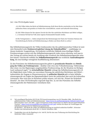Wissenschaftliche Dienste Sachstand Seite 7 WD 2 - 3000 - 011/20 Art. 1 des VN-Zivilpakts lautet: „(1) Alle Völker haben das Recht auf Selbstbestimmung. Kraft dieses Rechts entscheiden sie frei über ihren politischen Status und gestalten in Freiheit ihre wirtschaftliche, soziale und kulturelle Entwicklung. (2) Alle Völker können für ihre eigenen Zwecke frei über ihre natürlichen Reichtümer und Mittel verfügen, (…). In keinem Fall darf ein Volk seiner eigenen Existenzmittel beraubt werden. (3) Die Vertragsstaaten (…) haben entsprechend den Bestimmungen der Charta der Vereinten Nationen die Verwirklichung des Rechts auf Selbstbestimmung zu fördern und dieses Recht zu achten.“ Das Selbstbestimmungsrecht der Völker (insbesondere das des palästinensischen Volkes) ist zent- 11 raler Bestandteil jeder friedensvertraglichen Lösung des Nahostkonflikts – unabhängig von dessen konkreter Ausgestaltung. Als konkreter rechtlicher Maßstab eines künftigen Nahost- Friedensvertrages erweist sich das Selbstbestimmungsrecht indes etwas schwierig, weil man ja den Vertrag als solchen bereits als Ausübung oder Ausdruck des Selbstbestimmungsrechts anse- hen könnte. Gleichwohl entfaltet das Selbstbestimmungsrecht eine rechtliche Ausstrahlungswir- kung, die eine künftige vertragliche Konfliktlösung determiniert. Zu den Postulaten des Selbstbestimmungsrechts gehört in prozeduraler Hinsicht eine Beteili- gung des Volkes am Friedensprozess – denkbar wäre etwa eine Volksabstimmung / Referendum über einen von den Regierungen ausgehandelten Friedensvertrag, der die Situation im Heiligen 12 Land umfassend regelt. In wirtschaftlicher Hinsicht verlangt das Selbstbestimmungsrecht z.B. die Möglichkeit eines Volkes zur souveränen Nutzung der natürlichen Reichtümer und Mittel – insbesondere der Zugang zu Wasserressourcen. In politischer Hinsicht geht es beim Selbstbe- stimmungsrecht um Fragen der Eigenstaatlichkeit sowie der politischen aber auch der kulturellen Autonomie. Hier wird man im Einzelnen prüfen müssen, wie sich der „Primat der Sicherheit (Israels)“, der dem US-Friedensplan zugrunde liegt (Sec. 2), mit den Postulaten des Selbstbe- stimmungsrechts der Palästinenser vereinbaren lässt. *** 11 Vgl. grundlegend Resolution 59/179 der VN-Generalversammlung vom 20. Dezember 2004, „Das Recht des palästinensischen Volkes auf Selbstbestimmung“, https://www.un.org/Depts/german/gv-59/band1/ar59179.pdf. IGH Gutachten vom 9. Juli 2004, „Legal Consequences of the Construction of a Wall in the Occupied Palestinian Territory“, https://www.icj-cij.org/files/case-related/131/1677.pdf, welches die Mauer als Verstoß gegen das Selbstbestimmungsrecht der Palästinenser gewertet hat. Eli Murlakov, „Das Recht der Völker auf Selbstbestimmung im israelisch-arabischen Konflikt“, Schweizer Studien zum internationalen Recht Bd. 31, Zürich: Schulthess 1983. 12 Vergleichbar etwa mit der Regelung in Art. 146 GG, die für eine neue Verfassung eine Entscheidung des Deutschen Volkes voraussetzt.