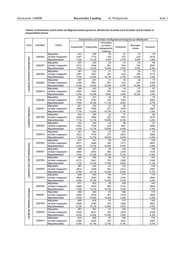 Seite 2 Bayerischer Landtag · 16. Wahlperiode Drucksache 16/6535 Zu 2.: Merkmale in den anonymisierten Schülerindividualdaten der Es werden alle ausländischen Mitbürgerinnen und Mitbürger „Amtlichen Schuldaten“ erfasst und können in benannter als Personen mit Migrationshintergrund eingruppiert. Abgrenzung in der erbetenen Aufgliederung ausgewertet werden. So stellt die folgende Tabelle die Zahl der Schüle- rinnen und Schüler mit Migrationshintergrund an öffentli- Zu 3.: chen (staatlichen und kommunalen) Schulen in den Schul- Für die Schulstatistik wurde im Rahmen der Kultusminister- jahren 2005/06 bis 2009/10 für die genannten Kreise im konferenz folgende länderübergreifend einheitliche Definiti- Oberland nach Schularten dar. Da an den Abendschulen so- on für den Migrationshintergrund gefunden, die sich auf die wie den beruflichen Schulen nicht alle Merkmale zum Mig- drei Merkmale „Staatsangehörigkeit“, „Verkehrssprache rationshintergrund erhoben werden, beschränkt sich die Dar- in der Familie“ und „Geburtsland“ stützt und die sich von stellung auf die allgemeinbildenden Schulen ohne die Abgrenzungen des Migrationshintergrunds aus anderen Be- Schulen des Zweiten Bildungswegs. reichen deutlich unterscheidet: Ein Migrationshintergrund liegt (aus schulstatistischer Sicht) genau dann vor, wenn Um einen Vergleich der Daten über die Kreisgrenzen hinweg (mindestens) eines der drei Merkmale in nichtdeutscher zu ermöglichen, wurde die Angabe der absoluten Schüler- Ausprägung vorliegt, wenn also in der Familie eine nicht- zahlen um die Nennung der Schülergesamtzahl und der sich deutsche Verkehrssprache gesprochen wird, der Schüler im daraus ergebenden Anteile der Schülerinnen und Schüler Ausland geboren wurde und/oder das Kind eine nichtdeut- mit Migrationshintergrund erweitert. Die Tabelle ermög- sche Staatsangehörigkeit hat. licht damit insbesondere die Analyse der Zahlen unter regio- nalen bzw. schulartspezifischen Gesichtspunkten als auch ei- Seit dem Schuljahr 2005/06 werden die drei genannten ne Betrachtung der zeitlichen Entwicklung.