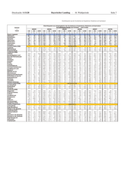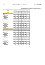 Seite 6 Bayerischer Landtag · 16. Wahlperiode Drucksache 16/1120 Übertrittsquoten aus der Grundschule bzw. Grundschule und Hauptschule Übertrittsquote an das Gymnasium und die Realschule Schulart für ausländische Schülerinnen und Schüler --- Gebiet 02/03 03/04 04/05 05/06 06/07 07/08 % % % % % % Gymnasium Bayern 16,5 17,0 17,5 17,1 19,3 - darunter aus GS 4 14,5 14,7 15,4 16,0 18,2 19,0 Oberbayern 18,6 19,4 19,6 19,6 21,7 - darunter aus GS 4 16,9 16,8 17,5 18,7 20,7 21,9 Niederbayern 16,1 16,5 13,0 16,2 16,4 - darunter aus GS 4 13,5 14,5 10,6 15,0 15,2 16,6 Oberpfalz 18,5 16,9 21,7 19,9 19,8 - darunter aus GS 4 16,0 14,7 19,5 17,5 17,7 17,7 Oberfranken 17,2 19,0 18,5 17,9 20,4 - darunter aus GS 4 14,3 16,2 16,3 16,9 19,5 17,2 Mittelfranken 15,7 17,4 18,4 16,2 19,2 - darunter aus GS 4 13,2 14,3 15,8 14,5 18,0 18,7 Unterfranken 12,8 10,8 14,0 12,4 14,4 - darunter aus GS 4 11,2 9,0 12,4 11,4 13,8 11,5 Schwaben 13,2 13,1 13,3 13,2 15,4 - darunter aus GS 4 11,6 11,9 11,5 12,7 14,6 16,3 (sechsstufige) Realschule 02/03 03/04 04/05 05/06 06/07 07/08 Bayern 12,5 13,7 14,9 15,6 16,6 - darunter aus GS 4 7,9 8,5 9,4 10,2 11,1 11,1 Oberbayern 14,4 14,8 16,0 16,6 18,0 - darunter aus GS 4 9,0 9,4 10,2 11,3 12,1 11,5 Niederbayern 11,5 14,7 12,5 17,3 18,4 - darunter aus GS 4 6,3 8,5 10,1 9,9 12,5 12,8 Oberpfalz 14,0 13,5 12,9 15,5 17,1 - darunter aus GS 4 8,7 9,3 7,0 10,2 12,2 10,7 Oberfranken 7,5 12,3 13,5 11,9 12,0 - darunter aus GS 4 4,9 7,5 8,0 6,6 7,7 8,3 Mittelfranken 10,0 11,5 12,4 13,1 13,5 - darunter aus GS 4 6,7 7,3 7,2 8,9 8,7 10,1 Unterfranken 14,1 12,8 15,6 14,5 14,1 - darunter aus GS 4 8,2 7,3 10,6 7,3 8,5 10,4 Schwaben 11,4 13,7 16,0 16,9 17,7 - darunter aus GS 4 7,5 8,2 9,8 11,0 12,1 11,9