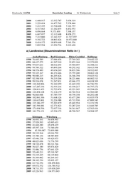 Drucksache 16/6704 Bayerischer Landtag · 16. Wahlperiode Seite 9 2000 6.448.917 13.552.787 3.038.519 2001 5.229.434 16.477.762 7.578.844 2002 5.215.195 13.724.608 7.141.757 2003 4.517.063 13.142.455 6.452.953 2004 4.096.664 9.373.430 7.308.157 2005 6.607.057 12.112.608 8.058.272 2006 7.215.880 13.141.537 11.727.397 2007 9.192.723 18.803.426 10.973.680 2008 8.414.172 18.859.608 7.341.556 2009 5.895.594 13.250.736 3.012.620 a) Landkreise (Steuereinnahmen Netto in € ) Aschaffenburg Bad Kissingen Rhön-Grabfeld Haßberge 1990 76.605.589 37.006.456 27.769.343 29.642.323 1991 84.637.275 41.307.910 32.853.144 33.372.899 1992 97.837.621 48.012.293 35.904.097 36.308.211 1993 99.789.522 49.899.204 40.292.142 38.413.998 1994 94.974.489 49.654.269 38.835.506 38.932.005 1995 93.325.167 46.151.666 35.795.240 38.461.124 1996 90.040.215 46.205.426 36.546.394 39.025.912 1997 92.398.918 50.219.204 38.221.446 40.002.513 1998 99.934.058 51.247.831 42.046.172 44.018.509 1999 110.260.806 52.142.059 41.669.150 46.746.591 2000 117.287.356 52.555.216 43.558.217 46.797.272 2001 128.811.453 52.723.874 42.221.243 49.294.026 2002 110.494.128 51.114.179 42.743.914 41.902.049 2003 96.860.048 47.789.759 40.790.358 40.201.648 2004 102.841.306 51.668.126 43.677.200 41.035.978 2005 110.635.801 52.226.988 45.715.930 47.889.545 2006 135.186.257 55.203.879 45.445.954 51.151.550 2007 143.590.481 62.371.823 53.287.210 61.660.785 2008 171.094.596 72.037.316 54.361.067 62.563.416 2009 141.776.131 65.324.173 48.700.567 54.904.327 Kitzingen Würzburg 1990 36.493.101 56.458.903 1991 37.920.503 62.005.633 1992 41.660.280 69.458.639 1993 45.597.114 71.540.650 1994 43.590.087 73.899.988 1995 50.319.364 69.016.792 1996 53.780.136 68.987.800 1997 47.446.738 69.429.075 1998 48.825.696 71.776.799 1999 54.510.478 80.311.766 2000 56.427.180 85.876.420 2001 51.486.756 87.661.129 2002 52.640.211 85.310.547 2003 51.219.225 84.119.860 2004 56.309.882 86.269.163 2005 58.102.530 92.892.127 2006 61.716.356 104.458.426 2007 69.072.552 136.740.532 2008 74.711.353 119.038.269 2009 63.226.963 114.971.043