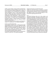 Bayerischer Landtag 16. Wahlperiode Drucksache 16/5112 12.07.2010 Schriftliche Anfrage tigkeiten der Schülerinnen und Schüler ausgerichteten För- derung gestaltet sich in den verschiedenen Schularten wie des Abgeordneten Günther Felbinger FW folgt: vom 12.04.2010 Grund- und Hauptschulen Individuelle Förderung Individuelle Förderung hat als Unterrichtsprinzip sowohl in der Grund- als auch in der Hauptschule seit Langem einen Ich frage die Staatsregierung: hohen Stellenwert. Die Lehrpläne beider Schularten betonen neue methodische 1. Wie sieht die individuelle Förderung der Schüler/-innen Konzepte, wie z. B. Formen offenen Unterrichts, um diesem im bayerischen Schulsystem konkret in den verschiede- Anspruch gerecht zu werden. Dabei geht es um die Förde- nen Schularten aus, von der in den Verlautbarungen des rung sowohl lernschwacher als auch besonders begabter Kultusministers immer wieder gesprochen wird? Schüler. Insbesondere in den Fächern Deutsch und Mathe- matik wird die Bedeutung individueller Lernwege und För- 2. Wie viele individuelle Förderstunden stehen in den ver- deransätze hervorgehoben. Dies setzt eine sorgfältige Beob- schiedenen Schularten bzw. den verschiedenen Jahr- achtung der individuellen Lernfortschritte und Lernwege der gangsstufen pro Woche den Schüler(n)/-innen zu? Schüler voraus. a) Findet diese individuelle Förderung in einzelnen Die jeweils in der Stundentafel ausgewiesenen Förderstun- Fächern/Fächerkombinationen statt? den sind Pflichtunterricht und werden gezielt für Fördermaß- b) In welcher Form findet diese individuelle Förderung nahmen durch die Klassenleiter eingesetzt. Diese Stunden (Einzel- oder Gruppenunterricht) statt? können in einer gemeinsamen Zeitschiene auch klassenüber- c) Wie viele zusätzliche Stellenäquivalente sind hierfür greifend organisiert werden, um stärker kompetenzorientiert in Bayern an den unterschiedlichen Schularten vor- arbeiten zu können. handen? Einen spezifischen Auftrag zur individuellen Förderung der 3. Wie unterscheidet sich die individuelle Förderung vom Schüler haben die Förderlehrer (Art. 60 Abs. 1 BayEUG). In Mobilen Sonderpädagogischen Dienst? Bayern werden derzeit rund 1.600 Förderlehrkräfte an Grund- und Hauptschulen beschäftigt. 4. Wie viele zusätzliche Mittel wurden für die individuelle Förderung der Schüler seit dem Jahr 2000 ins bayerische Förderschulen Schulsystem implementiert? Die Individualisierung ist der Kern des handlungsleitenden Paradigmas der Erziehung, Förderung, Unterrichtung und 5. Durch wen wird die individuelle Förderung durchge- Beratung in der Förderschule. führt? Sonderpädagogische Förderung betrachtet eine subjektorien- tierte, individualisierte Förderung als fachübergreifendes Prinzip. Dabei findet die pädagogisch-didaktische Berück- Antwort sichtigung individueller Lernausgangslagen und Förderbe- dürfnisse ihre Organisation in jedweden Sozial-, Aktions- des Staatsministeriums für Unterricht und Kultus und Arbeitsformen (von Einzelförderung bis zur gruppenori- vom 07.06.2010 entierten Förderorganisation). Grundlage des professionel- len, auf das einzelne Kind fokussierten sonderpädagogischen Die Antworten auf die Fragen 2, 2 a) bis 2 c), 4 und 5 kön- Handelns bilden die (a) individuelle Förderdiagnostik (inkl. nen schulartspezifisch den beigefügten tabellarischen Über- der Feststellung des individuellen sonderpädagogischen För- sichten entnommen werden. Die Frage 4 kann nicht für alle derbedarfs als Grundlage der prozessorientierten Förderung) Schularten beantwortet werden, auch eine Gesamtsumme sowie (b) individuelle Förder- und Erziehungsplanung für je- kann nicht genannt werden, da es z. T. den Schulen obliegt, den Schüler. Ggf. findet eine lehrplandifferenzierte Förde- innerhalb des ihnen zugewiesenen Stundenkontingents be- rung in der Klassengemeinschaft Berücksichtigung. stimmte Stunden zur individuellen Förderung auszuweisen. Das Primat individueller Förderung schließt die pädagogi- sche Arbeit und den Auftrag des gesamten Lehrpersonals Auf die Fragen 1 und 3 antworte ich wie folgt: ein. Darüber hinaus wird ein „Unterricht zur individuellen und gemeinsamen Förderung“ in den Stundentafeln über die Zu 1.: sonstigen Fächer hinaus ausgewiesen. Dies bietet weitere Das Prinzip einer an den individuellen Begabungen und Fer- Ressourcen zur Förderung des Einzelnen in der Gruppe. ______ Drucksachen, Plenarprotokolle sowie die Tagesordnungen der Vollversammlung und der Ausschüsse sind im Internet unter www.bayern.landtag.de - Parlamentspapiere abrufbar. Die aktuelle Sitzungsübersicht steht unter www.bayern.landtag.de - Aktuelles/Sitzungen/Tagesübersicht zur Verfügung.