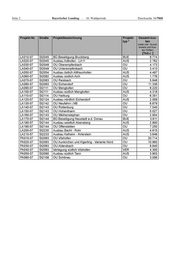 Seite 2 Bayerischer Landtag · 16. Wahlperiode Drucksache 16/7068 Projekt-Nr. Straße Projektbezeichnung Projekt- Gesamt-kos- typ * ten (netto inkl. Grund- erwerb und Kos- ten Dritter) [Tsd.€ ] LA010-07 St2045 BÜ-Beseitigung Bruckberg BUE 8.774 LA020-07 St2045 Ausbau Adlkofen - LA11 AUS 2.762 LA030-07 St2049 OU Oberempfenbach OU 4.173 LA040-07 St2049 OU Unterempfenbach OU 3.413 LA050-07 St2054 Ausbau östlich Altfraunhofen AUS 4.497 LA060-07 St2082 Ausbau südlich Aich AUS 1.776 LA070-07 St2083 OU Reisbach OU 5.848 LA080-07 St2083 OU Eichendorf OU 11.336 LA090-07 St2111 OU Mengkofen OU 8.220 LA100-07 St2111 Ausbau südlich Mengkofen AUS 4.318 LA110-07 St2114 OU Harburg OU 6.351 LA120-07 St2124 Ausbau nördlich Eichendorf AUS 2.009 LA130-07 St2142 OU Neufahrn i.NB OU 6.879 LA140-07 St2143 OU Rottenburg OU 7.540 LA150-07 St2143 OU Hohenthann OU 5.027 LA160-07 St2143 OU Weihenstephan OU 2.954 LA170-07 St2144 BÜ-Beseitigung Neustadt a.d. Donau BUE 3.611 LA180-07 St2144 Ausbau westlich Abensberg AUS 2.900 LA190-07 St2144 OU Offenstetten OU 7.250 LA200-07 St2230 Ausbau Bachl - Rohr AUS 4.815 LA210-07 St2233 Ausbau Kelheim - Ihrlerstein AUS 3.646 PA010-07 St2083 OU Vilshofen OU 20.714 PA020-07 St2083 OU Aunkirchen und Algerting - Variante Nord OU 10.960 PA030-07 St2083 OU Aldersbach OU 8.840 PA040-07 St2083 Verlegung südlich Vilshofen VER 4.300 PA050-07 St2090 Ausbau südlich Tann AUS 3.803 PA080-07 St2108 OU Schönau OU 3.006