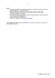 -3- Quellen: − Vorschlag für eine Richtlinie des Europäischen Parlamentes und des Rates zur Änderung der Richtlinie 89/552/EWG des Rates …, KOM (2005) 646 endg. − Richtlinie 89/552/EWG des Rates vom 3. Oktober 1989, ABl. L 298 vom 17. Oktober 1989. − Richtlinie 97/36/EG des EP und des Rates vom 30. Juni 1997, ABl. L 202 vom 30. Juli 1997. − Vierter Bericht KOM(2002) 778 endgültig. − Mitteilung der Kommission „Die Zukunft der europäischen Regulierungspolitik im audiovisuellen Bereich“ vom 15. Dezember 2003, KOM(2003) 784. − Mitteilung der Kommission, KOM(2004) 1450. − Euractiv, TWF, aktualisiert am 30.06.2006, www.euractiv.com Heike Baddenhausen, Barbara Thoma, Fachbereich XII – Europa, Tel.: 227-33614, E-mail: vorzim- mer.wf12g@bundestag.de Nr. 10/06 (10. Februar 2006)