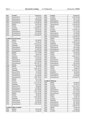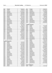 Drucksache 16/9415 Bayerischer Landtag · 16. Wahlperiode Seite 3 Ortsname Anzahl Annahmestellen Ortsname Anzahl Annahmestellen Unsleben 1 Unterpleichfeld 1 Veitshöchheim 1 Landkreis Schweinfurt Veitshöchheim 1 Bergrheinfeld 1 Waldbrunn 1 Dittelbrunn 2 Waldbüttelbrunn 1 Donnersdorf 1 Winterhausen 1 Euerbach 1 Zell am Main 1 Geldersheim 1 Gerolzhofen 3 Stadt Aschaffenburg 22 Gochsheim 3 Stadt Schweinfurt 23 Grafenrheinfeld 1 Stadt Würzburg 36 Grettstadt 1 Kolitzheim 1 Zu 2.: Niederwerrn 2 Eine detaillierte Aufschlüsselung nach Orten würde unmit- Oberschwarzach 1 telbar Rückschlüsse auf die Provisionen einzelner Annah- mestellen ermöglichen, da es in zahlreichen Orten nur eine Poppenhausen 1 Annahmestelle gibt. Dies würde einen unzulässigen Eingriff Röthlein 1 in Betriebs- und Geschäftsgeheimnisse dieser Unternehmen Schonungen 2 darstellen. Die nachfolgende Aufschlüsselung wurde daher Schwanfeld 1 nach Landkreisen und für die kreisfreien Städte durchge- Schwebheim 1 führt. Sennfeld 2 Stadtlauringen 1 Der Lotterie-Umsatz in den Jahren 2006, 2007, 2008, 2009 Waigolshausen 1 und 2010 stellt sich, aufgeschlüsselt nach Werneck 2 – den Landkreisen und den kreisfreien Städten, – den verschiedenen Produkten von Lotto Bayern Landkreis Würzburg wie folgt dar: Aub 1 Bergtheim 1 Jahr Produkt Umsatz in € Bütthard 1 Landkreis Aschaffenburg Eibelstadt 1 2006 KENO 327.425,00 Eisingen 1 2006 TOTO 108.398,20 Estenfeld 2 2006 LOTTO 8.198.019,00 Gerbrunn 2 2006 ODDSET 380.850,00 Giebelstadt 1 2006 GlücksSpirale 329.440,00 Güntersleben 1 2006 Sofortlotterien 821.459,00 Helmstadt 1 2006 Zusatzlotterien 2.907.656,00 Hettstadt 1 2007 KENO 320.105,00 Höchberg 4 2007 TOTO 141.577,40 Kirchheim 1 2007 LOTTO 8.298.592,50 Kist 1 2007 ODDSET 338.579,00 Kleinrinderfeld 1 2007 GlücksSpirale 313.405,00 Kürnach 1 2007 Sofortlotterien 811.323,00 Margetshöchheim 1 2007 Zusatzlotterien 2.919.936,50 Neubrunn 1 2008 KENO 267.830,00 Ochsenfurt 3 2008 TOTO 102.117,65 Randersacker 1 2008 LOTTO 7.472.277,00 Reichenberg 1 2008 ODDSET 239.919,50 Remlingen 1 2008 ExtraLOTTO 25.848,00 Rimpar 1 2008 GlücksSpirale 286.635,00 Rottendorf 1 2008 Sofortlotterien 723.920,00 Röttingen 1 2008 Zusatzlotterien 2.674.508,75 Sommerhausen 1 2009 KENO 245.996,00 Theilheim 1 2009 TOTO 111.991,45 Thüngersheim 1 2009 LOTTO 8.267.654,25 Uettingen 1 2009 ODDSET 241.216,00