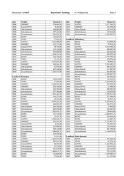 Seite 4 Bayerischer Landtag · 16. Wahlperiode Drucksache 16/9415 Jahr Produkt Umsatz in € Jahr Produkt Umsatz in € 2009 ExtraLOTTO 42.710,00 2006 LOTTO 3.201.741,00 2009 GlücksSpirale 220.060,00 2006 ODDSET 199.717,50 2009 Sofortlotterien 724.580,00 2006 GlücksSpirale 127.425,00 2009 Zusatzlotterien 3.138.859,25 2006 Sofortlotterien 414.597,00 2010 KENO 239.679,00 2006 Zusatzlotterien 1.190.528,50 2010 TOTO 115.048,50 2007 KENO 154.163,00 2010 LOTTO 7.549.059,75 2007 TOTO 51.337,75 2010 ODDSET 226.793,50 2007 LOTTO 3.142.991,25 2010 GlücksSpirale 189.080,00 2007 ODDSET 147.122,50 2010 Sofortlotterien 651.810,00 2007 GlücksSpirale 119.760,00 2010 Zusatzlotterien 3.222.960,75 2007 Sofortlotterien 373.423,00 2007 Zusatzlotterien 1.179.942,25 Landkreis Bad Kissingen 2008 KENO 109.368,00 2006 KENO 244.298,00 2008 TOTO 24.002,50 2006 TOTO 39.545,45 2008 LOTTO 2.765.974,50 2006 LOTTO 4.972.320,75 2008 ODDSET 138.200,00 2006 ODDSET 402.867,00 2008 ExtraLOTTO 10.778,00 2006 GlücksSpirale 208.865,00 2008 GlücksSpirale 104.470,00 2006 Sofortlotterien 714.026,00 2008 Sofortlotterien 333.160,00 2006 Zusatzlotterien 1.840.764,00 2008 Zusatzlotterien 1.042.233,00 2007 KENO 211.314,00 2009 KENO 104.466,00 2007 TOTO 48.022,30 2009 TOTO 25.176,90 2007 LOTTO 4.979.241,75 2009 LOTTO 3.015.521,25 2007 ODDSET 333.635,00 2009 ODDSET 93.986,00 2007 GlücksSpirale 195.605,00 2009 ExtraLOTTO 17.270,00 2007 Sofortlotterien 671.384,00 2009 GlücksSpirale 78.075,00 2007 Zusatzlotterien 1.843.587,75 2009 Sofortlotterien 336.430,00 2008 KENO 161.916,00 2009 Zusatzlotterien 1.238.647,50 2008 TOTO 28.757,65 2010 KENO 87.219,00 2008 LOTTO 4.401.164,25 2010 TOTO 30.900,25 2008 ODDSET 317.716,00 2010 LOTTO 2.727.861,75 2008 ExtraLOTTO 16.250,00 2010 ODDSET 98.189,00 2008 GlücksSpirale 171.325,00 2010 GlücksSpirale 70.055,00 2008 Sofortlotterien 624.220,00 2010 Sofortlotterien 331.560,00 2008 Zusatzlotterien 1.632.736,25 2010 Zusatzlotterien 1.274.012,75 2009 KENO 145.311,00 2009 TOTO 28.116,00 Landkreis Haßberge 2009 LOTTO 4.772.341,50 2006 KENO 199.688,00 2009 ODDSET 345.615,00 2006 TOTO 29.543,15 2009 ExtraLOTTO 28.986,00 2006 LOTTO 3.511.419,75 2009 GlücksSpirale 130.900,00 2006 ODDSET 399.349,50 2009 Sofortlotterien 604.320,00 2006 GlücksSpirale 178.790,00 2009 Zusatzlotterien 1.921.132,00 2006 Sofortlotterien 481.731,00 2010 KENO 139.524,00 2006 Zusatzlotterien 1.322.966,00 2010 TOTO 30.265,20 2007 KENO 174.036,00 2010 LOTTO 4.243.189,50 2007 TOTO 33.691,85 2010 ODDSET 337.507,50 2007 LOTTO 3.574.003,50 2010 GlücksSpirale 115.035,00 2007 ODDSET 263.310,50 2010 Sofortlotterien 566.750,00 2007 GlücksSpirale 167.790,00 2010 Zusatzlotterien 1.932.346,25 2007 Sofortlotterien 486.359,00 2007 Zusatzlotterien 1.350.419,75 Landkreis Rhön-Grabfeld 2008 KENO 157.681,00 2006 KENO 154.821,00 2008 TOTO 23.063,50 2006 TOTO 51.083,35 2008 LOTTO 3.159.549,00