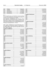 Drucksache 16/9415 Bayerischer Landtag · 16. Wahlperiode Seite 9 Zu 4.: Landkreis 1.826.306,04 1.775.544,28 1.533.833,23 1.774.196,70 1.626.393,14 Main-Spessart Die Staatliche Lotterieverwaltung ist entsprechend § 8 Abs. Landkreis 1.178.956,42 1.155.811,50 1.025.150,73 1.150.823,10 1.065.438,14 1 Glücksspielstaatsvertrag, der zum 1. Januar 2008 in Kraft Schweinfurt getreten ist, seit 2008 an das übergreifende Sperrsystem der Landkreis Würzburg 1.892.993,63 1.892.612,58 1.663.434,50 1.893.488,65 1.763.737,06 deutschen Spielbanken und der Lotteriegesellschaften der Stadt 1.752.364,37 1.749.511,64 1.502.474,46 1.681.897,55 1.587.410,91 Länder angeschlossen. Bis 2006 galt die Pflicht zur Unter- Aschaffenburg haltung des Sperrsystems nur für Spielbanken. Stadt Schweinfurt 1.877.077,90 1.804.910,83 1.534.479,67 1.729.996,22 1.579.065,94 Stadt Würzburg 2.889.964,68 2.888.891,85 2.471.580,93 2.816.168,14 2.550.224,80 In den genannten Landkreisen und kreisfreien Städten wurde folgende Anzahl von Sperren ausgesprochen: Zu 6.: Die von der Staatlichen Lotterieverwaltung erwirtschafteten 2006 2007 2008 2009 2010 Mittel fließen entsprechend dem Gesamtdeckungsprinzip Landkreis Aschaffenburg - - 1 1 - in den Staatshaushalt und werden nach Maßgabe des Haus- Landkreis Bad Kissingen 3 15 8 7 7 haltsgesetzes für öffentliche und gemeinnützige Zwecke ver- Landkreis Rhön-Grabfeld 2 - 1 2 - wendet. Die Einnahmen dienen im Rahmen des Gesamtde- Landkreis Haßberge 1 2 - 1 1 ckungsprinzips zur Mitfinanzierung zahlreicher Leistungen Landkreis Kitzingen - - 1 3 - aus dem Staatshaushalt, z. B. im Bereich Sportförderung, Landkreis Würzburg - 1 - - - Kulturförderung, Denkmalpflege und sonstiger öffentlicher Landkreis Main-Spessart 4 1 2 1 1 Bereiche. Insgesamt gehen die staatlichen Ausgaben in die- Landkreis Miltenberg - - - - - sen Bereichen deutlich über die Glücksspieleinnahmen hi- Landkreis Schweinfurt 1 5 1 3 5 naus. Auf die Erläuterungen zu Kapitel 1305 Titel 123 01 Stadt Aschaffenburg - - - - - des Haushaltsplans des Freistaats Bayern wird Bezug ge- nommen. Stadt Schweinfurt - 2 2 3 2 Stadt Würzburg 1 6 4 4 2 Unmittelbare Zuwendungen an bestimmte „Gruppen“ bzw. Institutionen für bestimmte Projekte oder Zwecke erfolgen Zu 5.: aus den Erträgen der Staatlichen Lotterieverwaltung grund- Berechnet nach dem Verhältnis des auf die genannten Land- sätzlich nicht. Dieser Grundsatz bietet die Gewähr dafür, kreise und kreisfreien Städte entfallenden Umsatzes zum dass das Parlament als Haushaltsgesetzgeber alle staatli- Gesamtumsatz der Staatlichen Lotterieverwaltung entfällt chen Aufgaben nach Bedeutung und Dringlichkeit gewich- folgender Gewinn auf die einzelnen Landkreise und kreis- tet und dementsprechend über die Verwendung der Mittel freien Städte: beschließt. – in Euro – 2006 2007 2008 2009 2010 Landkreis 2.755.840,50 2.745.680,99 2.430.548,82 2.776.618,41 2.580.341,71 Die bei Kapitel 1208 Titel 547 92 des Haushaltsplans des Aschaffenburg Freistaats Bayern für Maßnahmen zur Bekämpfung der Landkreis Bad Kissingen 1.775.502,25 1.730.274,79 1.515.676,95 1.704.625,38 1.558.353,05 Glücksspielsucht veranschlagten Mittel werden nicht un- Landkreis 1.125.653,74 1.079.749,73 933.259,13 1.049.175,68 977.549,20 mittelbar aus Erträgen der Staatlichen Lotterieverwaltung Rhön-Grabfeld finanziert. Landkreis 1.290.831,14 1.263.763,66 1.126.804,61 1.244.121,43 1.159.670,25 Haßberge Landkreis 1.469.713,96 1.433.941,56 1.239.095,81 1.407.473,09 1.311.568,40 Zu 7.: Kitzingen Vgl. Antwort zu Frage 6. Landkreis 2.026.189,20 1.996.770,62 1.754.110,83 1.970.892,79 1.803.064,15 Miltenberg