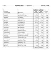 Seite 2 Bayerischer Landtag · 16. Wahlperiode Drucksache 16/12448 verfügbare verfügbare Personal- Personal- Landkreis/ stärke stärke Verände- kreisfreie Stadt Dienststelle 15.02.2012 01.03.2012 rung Miltenberg PI Miltenberg 40,17 41,00 0,83 Miltenberg PI Obernburg am Main 61,86 65,86 4,00 Würzburg PI Ochsenfurt 30,50 32,50 2,00 Schweinfurt PI Schweinfurt 161,97 168,33 6,36 Würzburg PI Würzburg-Land 80,63 84,63 4,00 Würzburg PI Würzburg-Ost 161,58 167,32 5,74 Würzburg PI Würzburg-West 56,20 56,35 0,15 Aschaffenburg KPI Aschaffenburg 73,66 71,03 –2,63 Schweinfurt KPI Schweinfurt 78,92 78,88 –0,05 Würzburg KPI Würzburg 120,27 121,64 1,38 Würzburg KPI (Z) Unterfranken 44,98 44,25 –0,73 Aschaffenburg VPI AB-Hösbach 71,50 72,50 1,00 Schweinfurt VPI Schweinfurt-Werneck 86,17 86,17 0,00 Kitzingen VPI Würzburg-Biebelried 105,15 107,15 2,00 Aschaffenburg Aschaffenburg – OED 50,00 51,00 1,00 Aschaffenburg Aschaffenburg – TED 11,00 11,00 0,00 Schweinfurt Schweinfurt – OED 50,00 51,00 1,00 Schweinfurt Schweinfurt – TED 12,00 12,00 0,00 Würzburg Würzburg-Ost – OED 51,95 52,95 1,00 Würzburg Würzburg-Ost – TED 2,00 2,00 0,00 2260,22 2287,309 27,09