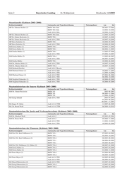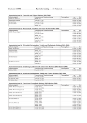 Drucksache 16/15893 Bayerischer Landtag · 16. Wahlperiode Seite 3 Staatsministerium für Unterricht und Kultus (Kabinett 2003–2008) Kabinettsmitglied Automarke und Typenbezeichnung Nutzungsdauer von bis StM Monika Hohlmeier BMW 745 I 10.2003–04.2005 StM Siegfried Schneider Audi A8 4.2 TDI 04.2005–10.2008 StS Karl Freller Audi A8 4.0 TDI 10.2003–10.2007 StS Bernd Sibler Audi A8 4.2 TDI 10.2007–03.2008 BMW 745 d 03.2008–10.2008 Staatsministerium für Wissenschaft, Forschung und Kunst (Kabinett 2003–2008) Kabinettsmitglied Automarke und Typenbezeichnung Nutzungsdauer von bis StM Dr. Thomas Goppel Audi A6 4.2 10.2003–12.2004 Audi A8 4.0 TDI 12.2004–06.2005 BMW 750 I 06.2005–12.2005 Audi A8 4.2 TDI 12.2005–07.2006 BMW 745 d 07.2006–12.2007 Audi A8 4.2 TDI 12.2007–06.2008 BMW 745 d 06.2008–10.2008 Staatsministerium für Wirtschaft, Infrastruktur, Verkehr und Technologie (Kabinett 2003–2008) Kabinettsmitglied Automarke und Typenbezeichnung Nutzungsdauer von bis StM Dr. Otto Wiesheu Audi A8 4,2 01.2003–11.2005 StM Erwin Huber BMW 745 d 11.2005–10.2007 StM Emilia Müller Audi A8 4,2 tdi 10.2007–06.2008 BMW 745 d 02.2008–10.2008 Audi A8 4,2 tdi 06.2008–10.2008 StS Hans Spitzner BMW 735 i 01.2003–04.2004 BMW 745 i 04.2004–06.2005 BMW 740 i 06.2005–10.2007 StS Markus Sackmann BMW 730 d 11.2007–10.2008 Audi A8 4,2 10.2007–10.2008 Staatsministerium für Ernährung, Landwirtschaft und Forsten (Kabinett 2003–Oktober 2008) Kabinettsmitglied Automarke und Typenbezeichnung Nutzungsdauer von bis StM Josef Miller Audi A8 4,2 TDI 01.2003–12.2008 Staatsministerium für Arbeit und Sozialordnung, Familie und Frauen (Kabinett 2003–2008) Kabinettsmitglied Automarke und Typenbezeichnung Nutzungsdauer von bis StM Christa Stewens Audi A8, 4,2 TDI 01.2001–10.2008 StS Jürgen W. Heike Audi A8, 4,2 TDI 10.2003–10.2007 StS Melanie Huml Audi A8, 4,2 TDI 10.2007–10.2008 Staatsministerium für Umwelt und Gesundheit (Kabinett 2003–Oktober 2008) Kabinettsmitglied Automarke und Typenbezeichnung Nutzungsdauer von bis StM Dr. Werner Schnappauf (1) AUDI A8 4,2 10.2003–01.2006 AUDI A8 4,2 TDI 01.2006–10.2007 StM Dr. Werner Schnappauf (2) AUDI A8 4,2 10.2003–01.2006 AUDI A8 4,2 TDI 01.2006–10.2007 StM Dr. Otmar Bernhard (1) BMW 745dA 11.2005–10.2008 BMW 745dA StM Dr. Otmar Bernhard (2) BMW 745dA 11.2005–10.2008 BMW 745dA StS Emilia Müller (1) AUDI A8 TDI 10.2003–11.2004 BMW 740dA 11.2004–08.2005 BMW 745dA 08.2005–11.2005 StS Emilia Müller (2) AUDI A8 TDI 10.2003–11.2004 BMW 740dA 11.2004–08.2005 BMW 745dA 08.2005–11.2005 StS Dr. Marcel Huber (1) AUDI A8 4,2 TDI 11.2007–10.2008 StS Dr. Marcel Huber (2) AUDI A8 4,2 TDI 11.2007–10.2008