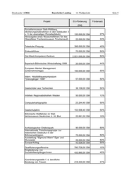 Seite 6 Bayerischer Landtag · 14. Wahlperiode Drucksache 14/3816 Projekt EU-Förderung Fördersatz (DM) Konservierung/ Restaurierung von Bausubstanz und Maschinen 320.000,00 DM 19% Aufbau eines Musterdepots 364.710,00 DM 29% Arbeiten und Lernen mit betrieblichem Praktikum 785.207,00 DM 35% Konservierung und Restaurierung historischer Bausubstanz u. Maschinen II 381.967,00 DM 25% Aufbau eines Musterdepots (Folgeantrag zu 42002) 360.000,00 DM 29% Konzept Verkehrsführung Nationalpark Bayerischer Wald 79.650,00 DM 50% Wanderausstellung "Begegnungen auf dem Weg" 1998 18.000,00 DM 50% Planungs-, Bau- und Handwerkszentrum zum Erhalt der historischen Bausubstanz 20.300,00 DM 50% Machbarkeitsstudie "Zentrum für landschaftsbezogenes und ökologisches Bauen" 16.510,00 DM 50% INTERREG III/PHARE CBC Raumkonzept für den bayerisch-tschechischen Grenzraum 223.000,00 DM 50% Personal- und Sachkosten der Euregios 1.113.000,00 DM 44% Übersetzungsanlage 75.000,00 DM 50% Summe: 33.231.914,56 DM