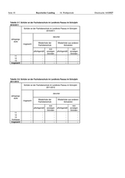 Seite 10 Bayerischer Landtag · 16. Wahlperiode Drucksache 16/13527 Tabelle 3-7. Schüler an der Fachoberschule im Landkreis Passau im Schuljahr 2010/2011 Schüler an der Fachoberschule im Landkreis Passau im Schuljahr 2010/2011 darunter Jahrgangs- stufe Wiederholer der Wiederholer aus anderen insgesamt Fachoberschule Schularten aus aus pflichtgemäß sonstigen pflichtgemäß sonstigen Gründen Gründen 11 - - - - - 12 - - - - - 13 - - - - - insgesamt - - - - - Tabelle 3-8. Schüler an der Fachoberschule im Landkreis Passau im Schuljahr 2011/2012 Schüler an der Fachoberschule im Landkreis Passau im Schuljahr 2011/2012 darunter Jahrgangs- stufe Wiederholer der Wiederholer aus anderen insgesamt Fachoberschule Schularten aus aus pflichtgemäß sonstigen pflichtgemäß sonstigen Gründen Gründen 11 - - - - - 12 - - - - - 13 - - - - - Vorklasse - - - - - insgesamt - - - - -