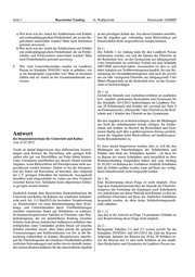 Seite 2 Bayerischer Landtag · 16. Wahlperiode Drucksache 16/13527 a) Wie hoch war der Anteil der Schülerinnen und Schüler an der jeweiligen Schule dar. Aus diesen Gründen unterblei- mit sonderpädagogischem Förderbedarf, die an den Re- ben die Angaben ggf. vollständig, wenn Rückschlüsse auf gelschulen unterrichtet wurden? Bitte nach Schularten Einzelschulen nicht ausgeschlossen werden könnten. getrennt ausweisen. b) Wie hoch war der Anteil der Schülerinnen und Schüler Zu 1.: mit sonderpädagogischem Förderbedarf, die an Förder- Der Tabelle 1 im Anhang kann für den Landkreis Passau schulen und Förderzentren unterrichtet wurden? Bitte entnommen werden, wie sich die Quoten der Übertritte an nach Förderbedarfen getrennt ausweisen. die Realschule bzw. an das Gymnasium aus Jahrgangsstufe 4 der Grundschule im zeitlichen Verlauf seit dem Schuljahr 8. Wie viele Unterrichtsstunden wurden im Landkreis 2007/2008 entwickelt haben. Anzumerken ist, dass es sich Passau im Schuljahr 2010/2011 nicht so gehalten, wie dabei lediglich um Teilübertrittsquoten handelt; für eine Be- es im Stundenplan vorgesehen war? Bitte in absoluten stimmung der Gesamtübertrittsquoten sind auch die jeweils Zahlen und als Anteil an der Gesamtstundenzahl aus- um ein Jahr verzögerten Übertritte aus Jahrgangsstufe 5 der weisen. Mittel-/Hauptschule an die Realschule bzw. an das Gymna- sium zu berücksichtigen. Zu 1. a): Gemäß der Statistik zum Aufnahmeverfahren an staatlichen bzw. staatlich anerkannten Realschulen und Gymnasien für das Schuljahr 2011/2012 beabsichtigten im Landkreis Pas- sau 20 Schülerinnen und Schüler mit zweimal der Note 4 im Probeunterricht („Elternwille“) den Übertritt an die Real- schule und 1 Schüler den Übertritt an das Gymnasium. Bei den Angaben ist zu berücksichtigen, dass die Meldungen aus Sicht der aufnehmenden Schule erfolgen. Da Schüle- rinnen und Schüler im Bereich der Realschulen und Gym- nasien häufig auch über Landkreisgrenzen hinweg pendeln, Antwort lassen die Angaben keine Rückschlüsse auf landkreisspezi- des Staatsministeriums für Unterricht und Kultus fische Besonderheiten zu. vom 31.07.2012 Es muss darauf hingewiesen werden, dass es sich bei den Vorab sei darauf hingewiesen, dass differenzierte Auswer- Meldungen um Entscheidungen der Schülerinnen und tungen nach Kreisen die Darstellung sehr geringer Fall- Schüler zum Ende des Schuljahres handelt – ob diese bis zahlen oder gar von Einzelfällen zur Folge haben können. zu Beginn des neuen Schuljahres auch tatsächlich an ihrer Unter Umständen unterbleiben aus diesem Grund einzelne Wahlentscheidung festgehalten haben und zum Stichtag Angaben, wenn Rückschlüsse auf Einzelpersonen nicht aus- 01.10.2011 im Rahmen des Verfahrens Amtliche Schuldaten geschlossen werden könnten. Zudem ist bei der Interpreta- dort als Schüler geführt werden, kann auf Basis des verfüg- tion der Daten auf Kreisebene zu beachten, dass aufgrund baren Datenbestands nicht festgestellt werden. der z. T. geringen Fallzahlen die statistische Aussagekraft derselben stark eingeschränkt ist, sodass aus dem Vergleich Zu 1. b): einzelner Kreise bzw. Schuljahre keine allgemeinen Schlüs- Eine Beantwortung dieser Frage ist nicht möglich. Zwar se gezogen werden können. liegt dem Staatsministerium über die Statistik der Übertritts- zeugnisse die Verteilung der Eignungen nach Schulämtern Zusätzlich kommt dem Bayerischen Staatsministerium für vor, jedoch kann aus dieser Statistik kein Konnex zu den tat- Unterricht und Kultus im Rahmen der staatlichen Schulauf- sächlichen Übertritten auf Basis der Amtlichen Schuldaten sicht nach Art. 111 BayEUG die besondere Verantwortung hergestellt werden, da diese keine Schülerleistungsmerk- zu, Einzelschulen vor einer Beeinträchtigung ihrer Erzie- male enthalten. hungs- und Unterrichtsarbeit durch Veröffentlichungen sensibler statistischer Daten auf Schulebene zu schützen. Zu 1. c): So könnten beispielsweise Tabellen zu Übertritts- oder Wie- Aus den in der Antwort zu Frage 1 b genannten Gründen ist derholerquoten, die ein unmittelbares Ranking einzelner eine Beantwortung dieser Frage nicht möglich. Schulen nach diesen statistischen Indikatoren enthalten oder ermöglichen, unter Umständen großen Druck auf einzelne Zu 2.: Schulen entstehen lassen, ohne dabei jedoch die genauen Beiliegende Tabellen 2-1 und 2-2 weisen jeweils für die Voraussetzungen und Einflussfaktoren vor Ort in die Be- Schuljahre 2010/2011 und 2011/2012 die Zahl der Klassen trachtung einbeziehen zu können. Beispielsweise unterlie- insgesamt, darunter der Klassen mit 26 bis 30 Schülern so- gen die Übertrittsquoten der einzelnen Grundschulen großen wie der Klassen mit 31 oder mehr Schülern an den staatli- zeitlichen Schwankungen und stellen bereits deshalb zumin- chen Realschulen und Gymnasien im Landkreis Passau aus. dest keinen direkten Indikator für die unterrichtliche Qualität
