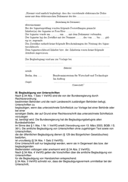 die beglaubigt werden soll, anzubringen ist, und welchen Inhalt er haben muss. Für den Beglaubigungsvermerk wird das folgende Muster empfohlen: Besteht das unterzeichnete Schriftstück aus mehreren Blättern, so sind diese so miteinander zu verbinden, dass ihre Trennung ohne merkbare Beschädigung nicht möglich ist; die Verbindungsstellen sind zu siegeln. § 34 VwVfG gilt nicht für die Beglaubigung von Unterschriften, die in amtlicher Eigenschaft geleistet werden. Rechtsbehelfsbelehrung und Benennung des zuständigen Gerichtes GO - BMWi 3.8 Nach § 59 der Verwaltungsgerichtsordnung (VwGO) ist eine Rechtsbehelfsbelehrung zu erteilen, wenn eine Bundesbehörde einen schriftlichen Verwaltungsakt erlässt, der der Anfechtung unterliegt. Verwaltungsakte des BMWi müssen mit einer Rechtsbehelfsbelehrung verbunden werden. Bisher enthielt diese den Hinweis, dass der Rechtsbehelf "schriftlich oder zur Niederschrift des Urkundsbeamten der Geschäftsstelle" des Verwaltungsgerichts eingelegt werden könne, sowie zusätzliche Hinweise zur Form der Einreichung (z.B. den Hinweis auf "Abschriften").
