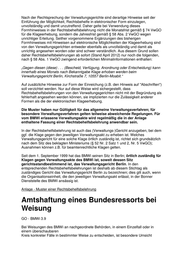 Nach der Rechtsprechung der Verwaltungsgerichte sind derartige Hinweise seit der Einführung der Möglichkeit, Rechtsbehelfe in elektronischer Form einzulegen, unvollständig und damit unzutreffend. Daher gelte bei Verwendung dieses Formhinweises in der Rechtsbehelfsbelehrung nicht die Monatsfrist gemäß § 74 VwGO für die Klageerhebung, sondern die Jahresfrist gemäß § 58 Abs. 2 VwGO wegen unrichtiger Erteilung. Seither vorgenommene Ergänzungen des bisherigen Formhinweises mit Hinweisen auf elektronische Möglichkeiten der Klageerhebung sind von den Verwaltungsgerichten entweder ebenfalls als unvollständig und damit als unrichtig angesehen worden oder sind schwer verständlich. Aus diesem Grund sollen daher Rechtsbehelfsbelehrungen ab sofort (Stand April 2012) nur noch die folgenden, nach § 58 Abs. 1 VwGO zwingend erforderlichen Minimalinformationen enthalten: „Gegen diesen (diese) . . . (Bescheid, Verfügung, Anordnung oder Entscheidung) kann innerhalb eines Monats nach Bekanntgabe Klage erhoben werden beim Verwaltungsgericht Berlin, Kirchstraße 7, 10557 Berlin-Moabit.“ Auf zusätzliche Hinweise zur Form der Einreichung (z.B. den Hinweis auf "Abschriften") soll verzichtet werden. Nur auf diese Weise wird sichergestellt, dass Rechtsbehelfsbelehrungen von den Verwaltungsgerichten nicht mit der Begründung als fehlerhaft angesehen werden können, sie implizierten nur die Zulässigkeit anderer Formen als die der elektronischen Klageerhebung. Die Muster haben nur Gültigkeit für das allgemeine Verwaltungsverfahren; für besondere Verwaltungsverfahren gelten teilweise abweichende Regelungen. Für vom BMWi erlassene Verwaltungsakte wird regelmäßig die in der Anlage enthaltene Fassung einer Rechtsbehelfsbelehrung anwendbar sein. In der Rechtsbehelfsbelehrung ist auch das (Verwaltungs-)Gericht anzugeben, bei dem ggf. die Klage gegen den jeweiligen Verwaltungsakt zu erheben ist. Welches Verwaltungsgericht für eine solche Klage örtlich zuständig ist, richtet sich grundsätzlich nach dem Sitz des beklagten Ministeriums (§ 52 Nr. 2 Satz 1 und 2, Nr. 5 VwGO); Ausnahmen können z.B. für beamtenrechtliche Klagen gelten. Seit dem 1. September 1999 hat das BMWi seinen Sitz in Berlin; örtlich zuständig für Klagen gegen Verwaltungsakte des BMWi ist, soweit dessen Sitz gerichtsstandbestimmend ist, das Verwaltungsgericht Berlin. In den entsprechenden Rechtsbehelfsbelehrungen ist deshalb ab diesem Stichtag als zuständiges Gericht das Verwaltungsgericht Berlin zu bezeichnen; dies gilt auch, wenn die Organisationseinheit, die den jeweiligen Verwaltungsakt erlässt, in der Bonner Dienststelle des BMWi ansässig ist. Anlage - Muster einer Rechtsbehelfsbelehrung Amtshaftung eines Bundesressorts bei Weisung GO - BMWi 3.9 Bei Weisungen des BMWi an nachgeordnete Behörden, in einem Einzelfall oder in einem überschaubaren Kreis konkreter Fälle in bestimmter Weise zu entscheiden, ist besondere Umsicht