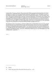 Wissenschaftliche Dienste Sachstand Seite 9 WD 10 - 3000 - 077/19 industriellen Fertigung erfassen. Diese potenzielle Marktzugangsbeschränkung habe laut Kess- ler/Blöchl vor allem mit einer Besonderheit nationaler Standards zu tun. Standards würden in der Regel zur Einhaltung empfohlen und nicht als verpflichtend erlassen. Das CSL fordere aber, dass „zwingende Anforderungen relevanter nationaler Standards“ einzuhalten seien. Häufig wür- den empfohlene Standards faktisch verpflichtend, weil die Einhaltung von Aufsichtsbehörden, Prüfstellen oder Vertragspartnern gefordert werde. Betreiber Kritischer Infrastrukturen seien so nach dem CSL gezwungen, nur Netzwerkprodukte und -services einzukaufen, für die die Einhal- tung relevanter Standards in Sicherheitsüberprüfungen nachgewiesen sei. 23 Die Sanktionen für Unternehmen und Netzwerkbetreiber sind ebenfalls durch das CSL geregelt. Hierbei können sowohl Netzwerkbetreiber und Unternehmen, als auch die für sie handelnden Personen zur Rechenschaft gezogen werden. „Für Gesetzesverstöße sind sowohl Geldbußen bis ca. 130.000 EUR, als auch weitere Strafen, wie der Entzug bestimmter Lizenzen, die Suspendie- rung der Geschäftsaktivitäten, sowie die vollständige Einstellung der Geschäftstätigkeit der Netz- werkbetreiber vorgesehen.“ 24 **** 23 Ebenda. 24 Oberlin, Jutta Sonja: Neues chinesisches Cyber-Security-Law…, a.a.O.