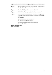 Bürgerschaft der Freien und Hansestadt Hamburg – 22. Wahlperiode Drucksache 22/682 Frage 4: Wie viele Förderprogramme für geringqualifizierte Flüchtlinge gibt es aktuell in Hamburg? Frage 5: Wie viele Flüchtlinge nehmen momentan daran teil? Frage 6: Welche Art der Förderung wird dabei im Einzelnen gewährt? Frage 7: Wie bewertet der Senat das Ausbildungsniveau in Hamburg lebender Flüchtlinge? Bitte prozentuelle Angaben zu folgenden Kriterien ange ben: a) Promotion; b) Abgeschlossenes Hochschulstudium; c) Abgeschlossene Berufsausbildung; d) Abgeschlossene Schulbildung von neun Jahren; e) Keine Schulbildung. Antwort zu Fragen 1 bis 7: Siehe Vorbemerkung. 3
