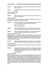 Drucksache 22/1123 Bürgerschaft der Freien und Hansestadt Hamburg – 22. Wahlperiode Frage 7: Wann ist nach aktuellem Sachstand mit dem Einbau des Kompres sors zu rechnen? Frage 8: Zu welchen Kosten hat die Anschaffung/Montage des Kompressors geführt? Antwort zu Fragen 1 bis 8: Siehe Vorbemerkung. Frage 9: Welche Funktionen soll der Kompressor bei der Absauganlage im Einzelnen übernehmen? Antwort zu Frage 9: Die Druckluft des Kompressors füllt eine Manschette an der Absauganlage, welche das Endauspuffrohr im gefüllten Zustand fest umschließt. Frage 10: Wurden die fehlenden Duschen bei der Bewertung der Maluspunkte bei der Freiwilligen Feuerwehr Bramfeld berücksichtigt? Wenn ja, in welcher Form? Wenn nein, warum nicht? Frage 11: Welche Auswirkungen hat das Fehlen einer Dusche bei der Bewer tung des Feuerwehrhauses gemäß der sogenannten Ampelliste? Frage 12: Warum werden für das Feuerwehrhaus der FF Bramfeld trotz fehlen der Duschen weiterhin die Maluspunkte 3,0 ausgewiesen? Antwort zu Fragen 10, 11 und 12: Die Bewertung der Feuerwehrhäuser erfolgt nach verschiedenen Kriterien durch die Freiwillige Feuerwehr, siehe auch Drs. 22/810. Da die älteren und noch nicht sanierten Wehrhäuser der Freiwilligen Feuerwehr regelmäßig nicht über entsprechende Dusch- möglichkeiten verfügen, wurde das Fehlen auch für die FF Bramfeld nicht mit geson derten Maluspunkten bewertet. Frage 13: Wann erfolgte die Überprüfung der Maluspunkte in der FF Bramfeld im Jahr 2020? Welche Prüfung wurde wie durch wen vorgenommen? Antwort zu Frage 13: Im Mai 2020 erfolgte eine Überprüfung und Aktualisierung der gesamten Ampelliste durch den Stab FF01. Frage 14: Der Senat teilt mit, dass das Gebäude der Freiwilligen Feuerwehr regelmäßig von der HFUK auditiert wird. Dem festgestellten Mangel einer fehlenden Absauganlage werde derzeit abgeholfen. Sind wei tere Mängel bekannt? Wenn ja, welche? Antwort zu Frage 14: Bei der FF Bramfeld handelt es sich um ein älteres Bestandsgebäude, wie dies für viele Feuerwehrhäuser gilt. Die Einrichtung dieser Feuerwehrhäuser erfolgte noch unter anderen Regelwerken. Die Bedingungen vor Ort lassen Anpassungen teilweise nur begrenzt zu. Bei der FF Bramfeld entspricht die Grundfläche der Remise nicht der heute vorgesehenen Quadratmeterzahl. Die Möglichkeiten zur Schwarz-Weiß-Trennung ent sprechen nicht den heutigen Anforderungen, für die Jugendfeuerwehr wäre ein Lager raum wünschenswert und es fehlen Duschmöglichkeiten. Zudem würde der Aufent halts- und Schulungsraum nach den heutigen Anforderungen etwas größer ausgestattet werden. 2