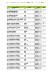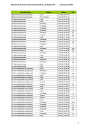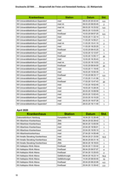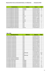 Bürgerschaft der Freien und Hansestadt Hamburg – 22. Wahlperiode Drucksache 22/1644 Krankenhaus Station Datum Std. KH Universitätsklinikum Eppendorf Kreißsaal 23.02.20 21:33:02 3,5 KH Universitätsklinikum Eppendorf Kreißsaal 23.02.20 23:04:25 9 KH Universitätsklinikum Eppendorf med 24.02.20 15:36:07 1 KH Universitätsklinikum Eppendorf med 25.02.20 10:08:18 1 KH Universitätsklinikum Eppendorf med 25.02.20 12:18:56 1 KH Universitätsklinikum Eppendorf ZNA 25.02.20 23:33:45 2,5 KH Universitätsklinikum Eppendorf med int. 26.02.20 02:16:48 3,5 KH Universitätsklinikum Eppendorf med 26.02.20 11:11:02 1 KH Universitätsklinikum Eppendorf med 26.02.20 14:58:56 1 KH Universitätsklinikum Eppendorf med int. 26.02.20 15:02:36 1 KH Universitätsklinikum Eppendorf med int. 26.02.20 17:09:45 2 KH Universitätsklinikum Eppendorf ZNA 26.02.20 22:45:42 3 KH Universitätsklinikum Eppendorf med 27.02.20 16:21:48 1 KH Universitätsklinikum Eppendorf med 28.02.20 09:31:50 1 KH Universitätsklinikum Eppendorf med 28.02.20 13:27:43 1 KH Wilhelmsburger KH Groß Sand med int. 14.02.20 20:02:51 1 März 2020 Krankenhaus Station Datum Std. Diakonieklinikum Hamburg med 13.03.20 15:18:21 1 KH Albertinen-Krankenhaus med 02.03.20 14:19:16 1 KH Albertinen-Krankenhaus med 02.03.20 20:04:01 1 KH Albertinen-Krankenhaus med 03.03.20 17:51:29 1 KH Albertinen-Krankenhaus med 03.03.20 20:08:58 1 KH Albertinen-Krankenhaus med 05.03.20 14:52:49 1 KH Albertinen-Krankenhaus med 05.03.20 19:49:17 1 KH Albertinen-Krankenhaus med 06.03.20 19:40:59 1 KH Albertinen-Krankenhaus med 07.03.20 19:15:08 1 KH Albertinen-Krankenhaus med 08.03.20 18:12:19 1 KH Albertinen-Krankenhaus med 08.03.20 20:04:41 1 KH Albertinen-Krankenhaus med 09.03.20 13:53:18 1 KH Albertinen-Krankenhaus med 10.03.20 20:26:57 1 KH Albertinen-Krankenhaus Gefäßchirurgie 12.03.20 09:17:34 86,5 KH Albertinen-Krankenhaus ZNA 14.03.20 22:07:18 26 KH Albertinen-Krankenhaus Gefäßchirurgie 16.03.20 07:54:34 1 KH Albertinen-Krankenhaus ISO 28.03.20 13:38:50 1 KH Amalie Sieveking Krankenhaus ISO 01.03.20 14:03:29 1,5 KH Amalie Sieveking Krankenhaus ZNA 03.03.20 19:37:31 1 KH Asklepios Klinik Altona Kreißsaal 01.03.20 23:57:23 6 KH Asklepios Klinik Altona Kreißsaal 02.03.20 05:39:41 3,5 KH Asklepios Klinik Altona Kreißsaal 02.03.20 08:42:01 2 KH Asklepios Klinik Altona Kreißsaal 02.03.20 11:34:47 5 KH Asklepios Klinik Altona Kreißsaal 02.03.20 16:37:57 3,5 KH Asklepios Klinik Altona Kreißsaal 02.03.20 20:30:36 11,5 15