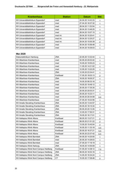 Drucksache 22/1644 Bürgerschaft der Freien und Hansestadt Hamburg – 22. Wahlperiode Krankenhaus Station Datum Std. KH Universitätsklinikum Eppendorf med 24.04.20 14:43:33 1 KH Universitätsklinikum Eppendorf med 27.04.20 18:37:32 1 KH Universitätsklinikum Eppendorf med 28.04.20 11:53:54 1 KH Universitätsklinikum Eppendorf med 28.04.20 13:46:25 1 KH Universitätsklinikum Eppendorf med 28.04.20 15:07:15 1 KH Universitätsklinikum Eppendorf med int. 29.04.20 10:20:41 1 KH Universitätsklinikum Eppendorf med int. 29.04.20 12:25:27 2 KH Universitätsklinikum Eppendorf med int. 29.04.20 15:00:39 2 KH Universitätsklinikum Eppendorf med 30.04.20 15:56:48 1 KH Universitätsklinikum Eppendorf med 30.04.20 19:36:03 1 Mai 2020 Diakonieklinikum Hamburg ZNA 22.05.20 13:32:44 1 KH Albertinen-Krankenhaus med 02.05.20 20:03:42 1 KH Albertinen-Krankenhaus med 10.05.20 19:55:23 1 KH Albertinen-Krankenhaus med 11.05.20 14:21:02 1 KH Albertinen-Krankenhaus med 12.05.20 13:22:25 1 KH Albertinen-Krankenhaus ZNA 12.05.20 23:34:41 1 KH Albertinen-Krankenhaus Kreißsaal 17.05.20 18:03:13 2 KH Albertinen-Krankenhaus ZNA 18.05.20 18:05:37 1 KH Albertinen-Krankenhaus med 19.05.20 08:33:16 1 KH Albertinen-Krankenhaus med 19.05.20 19:48:12 1 KH Albertinen-Krankenhaus med 20.05.20 17:35:35 1 KH Albertinen-Krankenhaus med 20.05.20 20:03:31 1 KH Albertinen-Krankenhaus med 25.05.20 15:23:11 1 KH Albertinen-Krankenhaus med 25.05.20 20:34:08 0,5 KH Albertinen-Krankenhaus med 27.05.20 19:22:56 1 KH Amalie Sieveking Krankenhaus ZNA 04.05.20 13:44:57 1 KH Amalie Sieveking Krankenhaus ZNA 05.05.20 18:15:34 1 KH Amalie Sieveking Krankenhaus ZNA 05.05.20 20:13:35 1 KH Amalie Sieveking Krankenhaus ZNA 12.05.20 17:50:31 1 KH Amalie Sieveking Krankenhaus ZNA 19.05.20 16:17:01 1 KH Asklepios Klinik Altona Kreißsaal 08.05.20 13:27:21 2 KH Asklepios Klinik Altona Kreißsaal 08.05.20 21:51:22 2 KH Asklepios Klinik Altona Kreißsaal 13.05.20 15:45:54 2 KH Asklepios Klinik Altona Kreißsaal 16.05.20 11:33:18 4,5 KH Asklepios Klinik Altona Kreißsaal 25.05.20 16:37:21 5,5 KH Asklepios Klinik Altona Kreißsaal 30.05.20 23:37:42 6,5 KH Asklepios Klinik Barmbek ZNA 04.05.20 14:20:55 1 KH Asklepios Klinik Barmbek med 20.05.20 14:26:03 1 KH Asklepios Klinik Barmbek med 27.05.20 17:16:19 1 KH Asklepios Klinik Harburg ZNA 18.05.20 14:55:09 1 KH Asklepios Klinik Nord Campus Heidberg Kreißsaal 01.05.20 14:38:12 7,5 KH Asklepios Klinik Nord Campus Heidberg ZNA 08.05.20 16:53:16 1 KH Asklepios Klinik Nord Campus Heidberg ZNA 14.05.20 16:34:24 1 KH Asklepios Klinik Nord Campus Heidberg CT 15.05.20 17:08:46 3 20