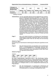 Drucksache 22/1203 Bürgerschaft der Freien und Hansestadt Hamburg – 22. Wahlperiode Strafverfolgungsstatistik, absolute Zahlen 2016 2017 2018 2019 Sonstige Zuchtmittel (nach § 15 JGG (Aufla gen wie Zahlungen eines Geldbetrags, Arbeitsleistungen etc.)) 532 563 466 401 Strafverfolgungsstatistik, Anteile in % Anzahl der verurteilten Jugendlichen und Heranwachsenden insgesamt 100 % 100 % 100 % 100 % Jugendstrafe 14,97 % 15,97 % 13,93 % 14,97 % davon ohne Strafaussetzung (§ 21 JGG) 8,36 % 9,08 % 8,71 % 9,42 % davon mit Strafaussetzung (§ 21 JGG) 6,60 % 6,89 % 5,21 % 5,55 % Jugendarrest 13 % 12 % 13 % 9% Sonstige Zuchtmittel (nach § 15 JGG (Aufla gen wie Zahlungen eines Geldbetrags, Ar beitsleistungen etc.)) 39 % 43 % 38 % 40 % Im Übrigen siehe Antwort zu 3. Frage 6: In wie vielen Fällen wurden Jugendliche und Heranwachsende seit dem Jahre 2016 jeweils zu einem Jugendarrest verurteilt? In wie vie len dieser Fälle wurden Jugendliche und Heranwachsende gemäß § 16a JGG zu einem Jugendarrest neben einer Jugendstrafe verur teilt? Wie häufig wurde Jugendarrest als Beugearrest verhängt, weil Weisungen oder Auflagen nicht nachgekommen wurde? Wie hat sich die Anzahl der vollzogenen Jugendarreste – differenziert nach Frei zeit-, Kurz- und Dauerarrest – entwickelt? Bitte jeweils pro Jahr in absoluten und prozentualen Zahlen angeben. Antwort zu Frage 6: Tabelle 6 2016 2017 2018 2019 Anzahl der Verurteilungen zu Jugendarrest 178 163 156 95 Anzahl der Verurteilungen zu Jugendarrest gemäß § 16 a JGG 0 1 0 2 Die Beugearreste, die im Beschlusswege erlassen werden, werden statistisch nicht erfasst. Eine händische Auswertung mehrerer Hundert Vollstreckungsakten jährlich ist in der für die Beantwortung Parlamentarischer Anfragen zur Verfügung stehenden Zeit nicht möglich. Einen Anhaltspunkt liefern die Aufnahmeanträge und vollstreckten Beu gearreste, die im Vorgangsverwaltungssystem der Jugendarrestanstalt vermerkt sind: Tabelle 7 Beugearreste 2016 2017 2018 2019 Anzahl der Aufnahmeersuchen 391 335 340 347 Vollzogene Beugearreste 175 154 160 158 Im Übrigen siehe Antwort zu 3. Tabelle 8 Vollzogene Ju gendarreste (inkl. 2016 2017 2019 2020* Beugearreste) absolut in % absolut in % absolut in % absolut in % Anzahl der vollzo genen Jugendar reste 256 238 205 84 Dauerarrest 196 77% 182 76% 155 76% 73 87% 4