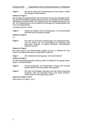 Drucksache 22/610 Bürgerschaft der Freien und Hansestadt Hamburg – 22. Wahlperiode Frage 4: Wo soll der Neubau des Schwimmbades und der weiteren sozialen Einrichtungen realisiert werden? Antwort zu Frage 4: Das lehrschwimmorientierte Becken soll im Bereich der Grenze des ehemaligen Gelän des der BFW Berufsförderungswerk Hamburg GmbH zum Gelände der Erich-Kästner- Stadtteilschule errichtet werden. Die Gespräche über den künftigen Standort des Kin der- und Familienzentrums und der weiteren Einrichtungen der Arbeiterwohlfahrt sind noch nicht abgeschlossen. Im Übrigen siehe Drs. 22/232. Frage 5: Werden die jetzigen Nutzer des Bewegungs- und Schwimmbades des BFW bei den Planungen beteiligt? Antwort zu Frage 5: Ja. Frage 6: Wie sollen die besonderen Anforderungen des Integrationsschwim mens für Frauen, wie nicht Einsehbarkeit und Schaffung eines geschützten Umfeldes, in anderen öffentlichen Schwimmbädern umgesetzt werden? Antwort zu Frage 6: BLH bietet sowohl in der Schwimmhalle Inselpark als auch im Hallenbad St. Pauli Frauen- und Mädchenschwimmen in geschütztem Umfeld an. Frage 7: Wer ist Betreiber des Bewegungs- und Schwimmbades? Antwort zu Frage 7: Die BFW Berufsförderungswerk Hamburg GmbH ist Betreiberin des jetzigen Bewe gungs- und Schwimmbades. Frage 8: Soll das Bewegungs- und Schwimmbad in diesem Jahr nochmals geöffnet werden oder ist ein direkter Abriss geplant? Frage 9: Wie sollen die derzeitigen Nutzungen nach dem Abriss kompensiert werden/wo sollen die derzeitigen Nutzer nach Abriss trainieren? Wurde bereits ein Nutzungskonzept erstellt? Antwort zu Fragen 8 und 9: Siehe Antwort zu Fragen 1 und 2. 2