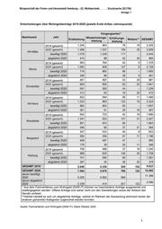 Drucksache 22/1764 Bürgerschaft der Freien und Hansestadt Hamburg – 22. Wahlperiode Antwort zu Frage 3: Nach Auswertung der Ablehnungsgründe in 2020 aus dem Fachverfahren zum Wohn geld (DAW-IT) für den Zeitraum bis zum Ende des 3. Jahresquartals waren die Haupt ablehnungsgründe, dass sich rechnerisch kein oder ein Wohngeldanspruch von unter 10 Euro errechnete (71 vom Hundert) sowie, dass kein wohngeldberechtigtes Haus haltsmitglied festgestellt werden konnte (18 vom Hundert). Die Entwicklung der Ableh nungsgründe innerhalb der letzten vier Jahre kann aufgrund der Systemumstellung von DIWOGE auf DAW-IT nicht dargestellt werden, da eine Auswertung und schlüssige Zusammenführung der Datenbestände in der für die Beantwortung einer Parlamentari schen Anfrage zur Verfügung stehenden Zeit nicht möglich ist. Frage 4: Wie hat sich der Gesamtbetrag des monatlich ausgezahlten Wohn geldes im Zeitraum 1. Januar bis 30. September 2020 entwickelt? Bitte nach Bezirken getrennt und insgesamt angeben. Frage 5: Wie hat sich der in Frage 4 genannte Gesamtbetrag im Vergleich zum Vorjahreszeitraum verändert? Bitte ebenfalls nach Bezirken getrennt und insgesamt angeben. Frage 6: Wie viel Wohngeld ist insgesamt im Zeitraum 1. Januar bis 30. Sep tember 2020 ausgezahlt worden? Bitte nach Bezirken getrennt und insgesamt angeben. Antwort zu Fragen 4, 5 und 6: Siehe Anlage 2. 2