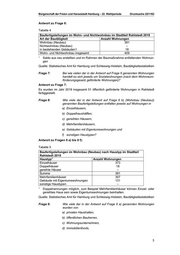 Drucksache 22/1162 Bürgerschaft der Freien und Hansestadt Hamburg – 22. Wahlperiode Antwort zu Frage 3: Tabelle 2 Jahr Anzahl aus der Bindung fallende Wohnungen (1. Förderweg) 2020 188 2021 147 2022 - 2023 193 2024 23 2025 114 2026 625 2027 464 2028 - 2029 187 2030 166 Gesamt 2.107 Quelle: IFB Im 2. Förderweg gibt es erst 2033 und 2034 ein planmäßiges Bindungsende. Frage 4: Wie viele der in der Antwort auf Frage 1 genannten Wohnungen waren Wohnungen in Ein- und Zweifamilienhäusern? Antwort zu Frage 4: Tabelle 3 1 Wohnungsbestand im Stadtteil Rahlstedt am 31. Dezember 2019 darunter Wohnungen ins Wohnungen in Einfamili Wohnungen in Zweifamilien gesamt enhäusern häusern 44.898 10.642 2.118 1 Fortschreibung basierend auf den endgültigen Ergebnissen der Gebäude- und Woh nungszählung 2011 Quelle: Statistisches Amt für Hamburg und Schleswig-Holstein, Bautätigkeitsstatistiken Wohnungsbautätigkeit Frage 5: Wie viele Wohnungen im Wohn- und Nichtwohnbau wurden im Jahre 2019 im Stadtteil Rahlstedt genehmigt? Antwort zu Frage 5: Im Stadtteil Rahlstedt wurden im Jahr 2019 Baugenehmigungen für insgesamt 327 Wohnungen erteilt (Quelle: Statistisches Amt für Hamburg und Schleswig-Holstein, Bautätigkeitsstatistiken). Frage 6: Wie viele Wohnungen a) im Wohn- und Nichtwohnbau insgesamt sowie b) im Wohnbau (Neubau), c) im Nichtwohnbau (Neubau) und d) in bestehenden Gebäuden wurden im Jahre 2019 im Stadtteil Rahlstedt jeweils fertiggestellt? 2