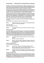 BÜRGERSCHAFT DER FREIEN UND HANSESTADT HAMBURG Drucksache 22/1668 22. Wahlperiode 13.10.20 Schriftliche Kleine Anfrage der Abgeordneten Birgit Stöver (CDU) vom 05.10.20 und Antwort des Senats Betr.: Digitalisierung an den Hamburger Schulen Einleitung für die Fragen: Im Rahmen einer Pressekonferenz hat Schulsenator Rabe am vergangenen Donnerstag den Stand der Digitalisierung an Hamburgs Schulen erläutert. Demnach wurde das Gymnasium Dörpsweg gerade als 100. Schule mit dem zentralen Lernmanagementsystem „LMS Lernen Hamburg“ (auf Moodle- Basis) ausgestattet. Erst ein paar Tage zuvor hatte die OECD Deutschland ein schlechtes Zeugnis im Hinblick auf die Ausstattung und die Voraussetzungen für das Distanzlehren und -lernen ausgestellt. Den Ergebnissen einer PISA- Zusatz-Studie zufolge konnten in Deutschland 2018 nur 33 Prozent der Schü lerinnen und Schüler eine Schule mit einer effektiven Online-Lernplattform besuchen, während es im Durchschnitt der OECD-Länder mehr als 50 Prozent waren. Vor diesem Hintergrund frage ich den Senat: Einleitung für die Antworten: Ein Lernmanagementsystem (LMS) dient der Bereitstellung von Lerninhalten und der Organisation von Lernvorgängen. LMS Lernen Hamburg ist ein cloudbasiertes LMS. Aufgabe dieser webbasierten Lernumgebung ist es, die Kommunikation zwischen Ler nenden und Lehrenden zu ermöglichen. Schulen, Lehrkräfte sowie Schülerinnen und Schüler können durch Unterrichtskonzepte, Unterrichtsmaterialien, Unterrichtsinhalte und Unterrichtsprozesse, wie zum Beispiel Aufgabenstellungen, Lernhinweise et cete- ra, unterstützt werden. Für diese Funktionen enthält das LMS Lernen Hamburg auch verschiedene Kommunikationsmittel, wie einen Messenger oder eine Videoplattform und Arbeitsmittel, wie ein Office-Paket oder Online-Interaktionen. LMS gibt es sowohl von kommerziellen Anbietern, wie zum Beispiel das LMS „itslearn ing“, aber auch als Open-Source-Lösungen, wie zum Beispiel das LMS Moodle. Das LMS Lernen Hamburg basiert auf Moodle und entspricht damit der Open-Source- Strategie des Senats. Das Projekt „Lernmanagementsystem staatliche Schulen und LI“ entwickelt LMS Lernen Hamburg unter dem DigitalPakt Schule. Mit Schreiben des Landesschulrats vom 16. Juni 2020 wurden alle staatlichen Schulen informiert, dass das LMS Lernen Hamburg zur Nutzung ab dem Schuljahr 2020/2021 zur Verfügung steht. Schulen, die mit der Nutzung von LMS Lernen Hamburg beginnen möchten, durchlaufen einen strukturierten Anmeldeprozess. Nach einem ausführlichen Informationsgespräch werden die Schulen in den Kreis der Nutzer aufgenommen und Schulungstermine festgelegt. In den Auftaktschulungen werden vier Lehrkräfte pro Schule als schulische LMS-Administratoren und -Multiplikatoren ausgebildet. Danach folgt die Vorbereitung des LMS in der Schule, unter anderem durch Schulung der Lehr kräfte. Der Schulungsprozess zu Bedienungs- und Administrationsthemen wird durch einen externen Dienstleister und zu methodisch-didaktischen Themen durch das Lan desinstitut für Lehrerbildung und Schulentwicklung (LI) durchgeführt.