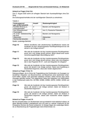 Drucksache 22/1146 Bürgerschaft der Freien und Hansestadt Hamburg – 22. Wahlperiode Antwort zu Fragen 8 bis 9 b): Zum 2. August 2020 wohnt am erfragten Standort kein Ausreisepflichtiger ohne Dul dung. Die Duldungssachverhalte sind der nachfolgenden Übersicht zu entnehmen: Tabelle 3 Duldungsgrund Anzahl Staatsangehörigkeit gem. § 60a AufenthG Familiäre Bindung zu 4 Bosnien und Herzegowina Duldungsinhaber Kein Reisedokument/ 2 Iran (1), Russische Föderation (1) Passlosigkeit Art. 6 GG - bleibeberechtig 2 Bosnien und Herzegowina tes Kind Afghanistan 1 Afghanistan Rechtsmittel abwarten 1 Irak Quelle: zuständige Behörde Frage 10: Welche beruflichen oder akademischen Qualifikationen weisen die Ausländer mit Asyl- beziehungsweise Flüchtlingshintergrund auf, die derzeit in der Anlage wohnen? Frage 11: Wie viele der Ausländer mit Asyl- beziehungsweise Flüchtlingshinter grund, die in der Anlage derzeit wohnen, gehen aktuell einer sozial versicherungspflichtigen Beschäftigung nach? Frage 12: Wie viele der Ausländer mit Asyl- beziehungsweise Flüchtlingshinter grund, die in der Anlage derzeit wohnen, waren oder sind eingebun den in das Programm W.I.R – work and integration for refugees? Frage 13: Wie viele der Ausländer mit Asyl- beziehungsweise Flüchtlingshinter grund, die derzeit in der Anlage wohnen, haben eine Ausbildung in Deutschland begonnen, diese aber wieder abgebrochen? Antwort zu Fragen 10 bis 13: Datengrundlagen, die im Sinne der Fragestellung eine Kombination von Aussagen zur beruflichen Integration von Bewohnerinnen und Bewohnern einer bestimmten Unter kunft treffen, werden nicht gesondert statistisch erhoben. Daher können dazu keine Aussagen getroffen werden. Zum allgemeinen Status der Integration von Geflüchteten in den Arbeitsmarkt siehe Drs. 22/1068, 22/968, 22/866, 22/818, 22/682, 22/546 und 22/231. Frage 14: Wie viele der Ausländer mit Asyl- beziehungsweise Flüchtlingshinter grund, die derzeit in der Anlage wohnen, haben ein Studium in Deutschland begonnen? Frage 15: Wie viele der Ausländer mit Asyl- beziehungsweise Flüchtlingshinter grund, die derzeit in der Anlage wohnen, haben ein Studium in Deutschland begonnen, dieses aber inzwischen wieder abgebro chen? Antwort zu Fragen 14 und 15: Bei der Immatrikulation von Studierenden wird grundsätzlich nicht statistisch erfasst, ob diese öffentlich-rechtlich untergebracht sind und wenn ja, welcher Unterkunft mit der Perspektive Wohnen die Person entstammt. Im Übrigen liegen der zuständigen Behör- de zur Beantwortung der Fragestellungen keine Erkenntnisse vor. 4