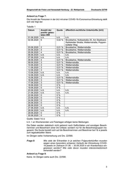 Bürgerschaft der Freien und Hansestadt Hamburg – 22. Wahlperiode Drucksache 22/749 Antwort zu Frage 7: Die Anzahl der Personen in der örU mit einer COVID-19-/Coronavirus-Erkrankung stellt sich wie folgt dar: Tabelle 1 Datum Anzahl der Quote öffentlich-rechtliche Unterkünfte (örU) positiv getes teten BW 01.06.2020 k.A. k.A. k.A. 02.06.2020 6 0,02 % Brookkehre, Notkestraße 25, Am Stadtrand, Rahlstedter Straße; Wetternstraße, Poppen bütteler Weg 03.06.2020 2 0,01 % Brookkehre, Wetternstraße 04.06.2020 4 0,01 % Brookkehre, Wetternstraße 05.06.2020 4 0,01 % Brookkehre, Wetternstraße 06.06.2020 k.A. k.A. k.A. 07.06.2020 k.A. k.A. k.A. 08.06.2020 4 0,01 % Brookkehre, Wetternstraße 09.06.2020 3 0,01 % Wetternstraße 10.06.2020 3 0,01 % Wetternstraße 11.06.2020 3 0,01 % Wetternstraße 12.06.2020 3 0,01 % Wetternstraße 13.06.2020 k.A. k.A. k.A. 14.06.2020 k.A. k.A. k.A. 15.06.2020 3 0,01 % Wetternstraße 16.06.2020 3 0,01 % Wetternstraße 17.06.2020 3 0,01 % Wetternstraße 18.06.2020 0 0% 19.06.2020 0 0% 20.06.2020 k.A. k.A. k.A. 21.06.2020 k.A. k.A. k.A. 22.06.2020 0 0% 23.06.2020 0 0% 24.06.2020 0 0% 25.06.2020 0 0% 26.06.2020 0 0% 27.06.2020 k.A. k.A. k.A. 28.06.2020 k.A. k.A. k.A. 29.06.2020 0 0% 30.06.2020 0 0% Quelle: Daten f & w k.A. = an Wochenenden und Feiertagen erfolgen keine Meldungen. Die Daten werden statistisch nicht getrennt nach Geflüchteten und sonstigen Bewoh nerinnen und Bewohnern einer örU erfasst, sondern nur für die Bewohnergruppen ins gesamt. Die Quote bezieht sich auf die Bewohnerinnen und Bewohner bei f & w jeweils zum tagesaktuellen Stand. Im Übrigen siehe Vorbemerkung und Drs. 22/590. Frage 8: Wie viele der Erkrankten in je welchen Folgeunterkünften mussten wegen eines besonders schweren Verlaufs der Erkrankung COVID- 19 jeweils im Zeitraum 01.06. – 30.06.2020 in ein Krankenhaus ein gewiesen werden? Wie viele davon mussten intensivmedizinisch behandelt werden? Antwort zu Frage 8: Keine. Im Übrigen siehe auch Drs. 22/590. 3