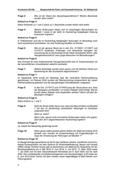 Drucksache 22/1350 Bürgerschaft der Freien und Hansestadt Hamburg – 22. Wahlperiode Frage 4: Wie ist der Stand des Bauantragsverfahrens? Welche Bescheide wurden wann erteilt? Antwort zu Frage 4: Siehe Antworten zu 1 und 2 sowie zu 3. Bescheide wurden bisher nicht erteilt. Frage 5: Welche Änderungen haben sich im beantragten Bauvorhaben für Baufeld 1 sowie in der dafür im Kaufvertrag festgelegten Nutzung inzwischen ergeben? Antwort zu Frage 5: In Teilbereichen sind die im Kaufvertrag festgelegten Nutzungen im Bauantrag noch nicht ausreichend konkretisiert, um eine Änderung beziffern zu können. Frage 6: Wie ist der genaue Stand der in den Drs. 21/18001, 21/18677 und 21/19173 erwähnten Prüfungen und Gespräche bezüglich der Umsetzung der im Kaufvertrag mit der Stadt vereinbarten Wohn- oder Hausgemeinschaft für neun junge Menschen mit Behinderungen? Antwort zu Frage 6: Das Konzept für eine entsprechende Hausgemeinschaft wird im Zusammenspiel mit der baurechtlichen Umsetzbarkeit weiterhin erarbeitet. Frage 7: Welche Nachträge wurden wann genau und mit welchem Inhalt zum Kaufvertrag für das Grundstück abgeschlossen? Antwort zu Frage 7: Im September 2019 wurde ein Nachtrag über die veränderte Flächenaufteilung geschlossen. Im Februar 2020 wurden der Rahmenvertrag entsprechend der neuen Flächenaufteilung geändert und die dazugehörigen Dienstbarkeiten angepasst. Frage 8: In den Drs. 21/19173 und 21/19433 ging der Senat davon aus, dass der Baubeginn auf Baufeld 1 im ersten Halbjahr 2020 erfolgt. Warum konnte dieser Zeitplan nicht eingehalten werden? Wann soll jetzt der Baubeginn erfolgen? Antwort zu Frage 8: Siehe Antwort zu 1 und 2. Frage 9: Geht der Senat weiter davon aus, dass das Bauvorhaben auf Baufeld 1 mit den im Kaufvertrag vereinbarten Nutzungen im Einzelnen umgesetzt wird? Wenn ja, wann? Wenn nein, warum nicht und welche Änderungen haben sich gegen über dem 2017 abgeschlossenen Kaufvertrag ergeben? Antwort zu Frage 9: Ja, sobald der Bauantrag genehmigt wurde. Frage 10: Wann genau hatten jeweils welche Stellen der Stadt seit Anfang 2019 Kontakt zum Investor im Zusammenhang mit Fragestellungen im Zuge der Umsetzung der Planungen auf Baufeld 1? Antwort zu Frage 10: Im Baugenehmigungsverfahren ist die für das Verfahren übliche, schriftliche und forma lisierte Korrespondenz mit dem Zentrum für Wirtschaftsförderung, Bauen und Umwelt (WBZ) erfolgt. Darüber hinaus gab es persönliche und telefonische Gespräche mit der Bezirksamtsleitung am 9. Mai 2019, 6. Juni 2019, 2. Juli 2019, 13. März 2020 sowie 1. Juli 2020 und mit dem Gesundheitsamt Wandsbek am 9. April 2020 und 29. April 2020. Der Landesbetrieb Immobilienmanagement und Grundvermögen (LIG) hatte am 6. Juni 2019 einen Termin mit dem Investor sowie regelmäßigen E-Mail-Verkehr zum Planungsstand. 2