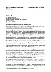 Landtag Brandenburg Drucksache 6/5324 6. Wahlperiode Antwort der Landesregierung auf die Kleine Anfrage Nr. 2151 des Abgeordneten Dr. Rainer van Raemdonck der AfD-Fraktion Drucksache 6/5197 Zahnmedizinische Versorgung von Asylbewerbern Namens der Landesregierung beantwortet die Ministerin für Arbeit, Soziales, Ge- sundheit, Frauen und Familie die Kleine Anfrage wie folgt: Vorbemerkungen der Fragesteller: Asylbewerber werden im Land Brandenburg unter anderem zahnmedizinisch versorgt. Der Umfang der jeweiligen zahnärztlichen Be- handlung richtet sich dabei nach dem Asylbewerberleistungsgesetz, wonach grund- sätzlich nur akute Erkrankungen und Schmerzzustände behandelt werden sollen. Die Bewertung, ob ein derartiger Fall gegeben ist, liegt dabei im Ermessen des behan- delnden Arztes. Medienberichten zufolge werden bei Asylbewerbern häufig kostspie- lige und umfangreiche Zahnbehandlungen bis hin zu kompletten Zahnsanierungen vorgenommen, die zur Behandlung akuter Schmerzzustände nicht erforderlich sind. Frage 1: Wie viele Asylbewerber haben im Zeitraum vom 01.01.2015 bis heute im Land Brandenburg zahnmedizinische Behandlungen in Anspruch genommen (mit der Bitte um tabellarische Auflistung nach Jahr und Landkreis)? Frage 2: Um welche konkreten medizinischen Behandlungen handelt es sich dabei (bitte nach Jahr und Kosten pro Asylbewerber aufschlüsseln)? Frage 3: Welche Kosten wurden für das Land Brandenburg durch die zahnärztliche Behandlung von Asylbewerbern im oben stehenden Zeitraum insgesamt verursacht? zu den Fragen 1 bis 3: Die Fragen 1 bis 3 werden aufgrund ihres Sachzusammen- hangs zusammen beantwortet. Der Landesregierung liegen hierzu keine Informatio- nen vor, da diese Daten nicht statistisch erfasst werden. Die Durchführung des Asyl- bewerberleistungsgesetzes (AsylbLG) ist den Landkreisen und kreisfreien Städten als Pflichtaufgabe zur Erfüllung nach Weisung übertragen worden. Frage 4: Existieren Kontrollmechanismen, die sicherstellen, dass die von dem jewei- ligen behandelnden Zahnarzt für erforderlich gehaltene Behandlung nach objektiven Gesichtspunkten tatsächlich notwendig ist? Wenn ja, welche? zu Frage 4: Für Leistungsempfänger nach § 3 AsylbLG besteht ein Anspruch auf die erforderliche ärztliche und zahnärztliche Behandlung bei akuten Erkrankungen oder Datum des Eingangs: 25.10.2016 / Ausgegeben: 01.11.2016