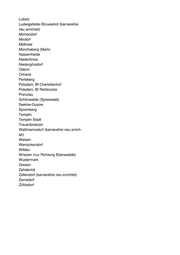 Lubolz Ludwigsfelde-Struveshof (barrierefrei neu errichtet) Michendorf Mixdorf Müllrose Müncheberg (Mark) Nassenheide Niederfinow Niedergörsdorf Oderin Ortrand Perleberg Potsdam, Bf Charlottenhof Potsdam, Bf Rehbrücke Prenzlau Schönwalde (Spreewald) Seelow-Gusow Spremberg Templin Templin Stadt Treuenbrietzen Waßmannsdorf (barrierefrei neu errich- tet) Weisen Wensickendorf Wildau Wriezen (nur Richtung Eberswalde) Wustermark Zeesen Zehdenick Zellendorf (barrierefrei neu errichtet) Zernsdorf Zühlsdorf