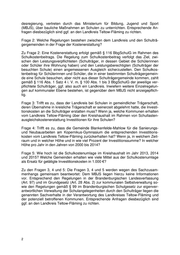 desregierung, vertreten durch das Ministerium für Bildung, Jugend und Sport (MBJS), über bauliche Maßnahmen an Schulen zu unterrichten. Entsprechende An- fragen diesbezüglich sind ggf. an den Landkreis Teltow-Fläming zu richten. Frage 2: Welche Regelungen bestehen zwischen dem Landkreis und den Schulträ- gergemeinden in der Frage der Kostenerstattung? Zu Frage 2: Eine Kostenerstattung erfolgt gemäß § 116 BbgSchulG im Rahmen des Schulkostenbeitrags. Die Regelung zum Schulkostenbeitrag verfolgt das Ziel, zwi- schen den Leistungsverpflichteten (Schulträger, in dessen Gebiet die Schülerinnen oder Schüler ihre Wohnung haben) und den Leistungsberechtigten (Schulträger der besuchten Schule) einen angemessenen Ausgleich sicherzustellen. Den Schulkos- tenbeitrag für Schülerinnen und Schüler, die in einer bestimmten Schulträgergemein- de eine Schule besuchen, aber nicht aus dieser Schulträgergemeinde kommen, zahlt gemäß § 116 Abs. 1 Satz 4 i. V. m. § 100 Abs. 1 bis 3 BbgSchulG der jeweilige ver- pflichtete Schulträger, ggf. also auch ein Landkreis. Inwiefern weitere Einzelregelun- gen auf kommunaler Ebene bestehen, ist gegenüber dem MBJS nicht anzeigepflich- tig. Frage 3: Trifft es zu, dass der Landkreis bei Schulen in gemeindlicher Trägerschaft, deren Übernahme in kreisliche Trägerschaft er seinerzeit abgelehnt hatte, die Investi- tionskosten an die Schulträger erstatten muss? Wenn ja, welche Kommunen erhalten vom Landkreis Teltow-Fläming über den Kreishaushalt im Rahmen von Schullasten- ausgleichskostenerstattung Investitionen für ihre Schulen? Frage 4: Trifft es zu, dass die Gemeinde Blankenfelde-Mahlow für die Sanierungs- und Neubauarbeiten am Kopernikus-Gymnasium die entsprechenden Investitions- kosten vom Landkreis Teltow-Fläming zurückerhalten hat? Wenn ja, in welchem Zeit- raum und in welcher Höhe und in wie viel Prozent der Investitionssumme? In welcher Höhe pro Jahr in den Jahren von 2000 bis 2014? Frage 5: Wie hoch ist die Schulkostenumlage im Kreishaushalt im Jahr 2013, 2014 und 2015? Welche Gemeinden erhalten wie viele Mittel aus der Schulkostenumlage als Ersatz für getätigte Investitionskosten in 1.000 €? Zu den Fragen 3, 4 und 5: Die Fragen 3, 4 und 5 werden wegen des Sachzusam- menhangs gemeinsam beantwortet: Dem MBJS liegen hierzu keine Informationen vor. Entsprechend den Regelungen in der Brandenburgischen Landesverfassung (Art. 97) und im Grundgesetz (Art. 28 Abs. 2) zur kommunalen Selbstverwaltung so- wie den Regelungen gemäß § 99 im Brandenburgischen Schulgesetz zur eigenver- antwortlichen Verwaltung der Schulangelegenheiten durch den Schulträger liegen die genannten Sachverhalte in der Verantwortung des Landkreises Teltow-Fläming und der potenziell betroffenen Kommunen. Entsprechende Anfragen diesbezüglich sind ggf. an den Landkreis Teltow-Fläming zu richten.