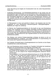 Landtag Brandenburg Drucksache 6/6959 schen Bauordnung die Aufgabe der Sonderaufsicht über die untere Bauaufsichtsbe- hörde wahr. - Zuständige Genehmigungs- und Planfeststellungsbehörde für den Ausbau des Ver- kehrsflughafens Berlin-Schönefeld ist die Gemeinsame Obere Luftfahrtbehörde Berlin- Brandenburg (LuBB), sie nimmt auch die Auf-gaben der Luftsicherheitsbehörde wahr. Die Fachaufsicht gegenüber der LuBB wird für das Brandenburger Territorium vom MIL ausgeübt. Das MIL ist die zuständige Genehmigungsbehörde für die Flughafen- entgelte und überwacht die Einhaltung der Bodenabfertigungsdienst-Verordnung durch die FBB GmbH. - Im Rettungswesen ist das Land gemäß § 6 Absatz 2 des Gesetzes über den Ret- tungsdienst im Land Brandenburg (Brandenburgisches Rettungsdienstgesetz - BbgRettG) der Träger der Luftrettung. - Im Rahmen des Flughafenasylverfahrens (§ 18a AsylG) ist das Land Brandenburg rechtlich dazu verpflichtet, die am Flughafen Schönefeld errichtete Unterkunft (§ 65 AufenthG) zu unterhalten sowie die Unterbringung, Betreuung und Bewachung der dort für die Dauer des Flughafenasylverfahrens unterzubringenden Asylsuchenden si- cherzustellen. Die Asylunterkunft für das Flughafenverfahren ist Teil der Zentralen Aus- länderbehörde (ZABH). - Des Weiteren sind mehrere Enteignungsanträge anhängig, bei denen es sich um landschaftspflegerische Ausgleichs- und Ersatzmaßnahmen im Zusammenhang mit dem Ausbau des Flughafens Schönefeld handelt. - Der Flughafen Schönefeld liegt im Zuständigkeitsbereich der Gerichte und der Staats- anwaltschaft des Landes Brandenburg. - Das Land Brandenburg nimmt momentan am Flughafen Schönefeld die hoheitlichen Aufgaben der Grenzkontrollstelle nach folgenden Vorschriften wahr: - Tiergesundheitsgesetz vom 22. Mai 2013 (BGBl. I S. 1324), das zuletzt durch Arti- kel 4 Absatz 85 des Gesetzes vom 18. Juli 2016 (BGBl. I S. 1666, 1674) geändert worden ist, und den aufgrund des Tiergesundheitsgesetzes erlassenen Rechts- verordnungen, - Tierschutzgesetz in der Fassung der Bekanntmachung vom 18. Mai 2006 (BGBl. I S. 1206, 1313), das zuletzt durch Artikel 4 Absatz 87 des Gesetzes vom 18. Juli 2016 (BGBl. I S. 1666, 1674) geändert worden ist, und den aufgrund des Tier- schutzgesetzes erlassenen Rechtsverordnungen und - Lebensmittel- und Futtermittelgesetzbuch in der Fassung der Bekanntmachung vom 3. Juni 2013 (BGBl. I S. 1426), das durch Artikel 1 der Verordnung vom 24. November 2016 (BGBl. I S. 2656) geändert worden ist, und den aufgrund des Le- bensmittel- und Futtermittelgesetzbuches erlassenen Rechtsverordnungen. Dies gilt auch für die Überwachung der Einhaltung der unmittelbar geltenden Rechts- akte der Europäischen Gemeinschaft oder der Europäischen Union über „die Ein- und Ausfuhr lebender und toter Tiere, von Teilen, Erzeugnissen, Rohstoffen und Abfällen von Tieren sowie sonstigen Gegenständen, die Träger von Ansteckungsstoffen sein können, und im Tiergesundheitsgesetz geregelte Sachbereiche betreffen.“ -2-