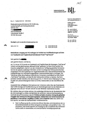 Spitzenverband der Lebensmittelwirtschaft Sunrl ffu l.elJ;o..ns:'l;itt.elrec.ht ~<1'!d !.e~\tte!~llnde tt V, BLL e. V. · Postfach 06 02 50 · l 0052 Berlin PoStfach o6 02 so 10052 B~in Niedersächsisches Ministerium für Ernährung, Landwirtsi:haft und Verbraucherschutz Referat 202 Frau' il ·· , AL!3-Vorsitzende Calenberger Straße 2 30169 Hannover Ciaire-Waldaff-Stralle 7 10n7 Berlin Jel, +49 30 206143-0 Fax +49 30 206't43-190 bll@bll.de · www.bll.de BUre Avenue des NerVie115 9-31 1040 BrÜssel, ·Belgien Tel +32 2 soB 1023 Fax +32 2 so8 1025 Per Mai!: ALB,Vorsitz@ mi.Niedersaclisen.de Tel. +49 30 206143129 Fax +4Q 30 206143229 Berlin, 23.01.19 Behördlicher Umgang mit VIGrAnfragen im Vorfeld von Veröffentlichungen auf dem von Foodwatch und FragDenStaat betriebenen Portai"TopfSecret" Sehr geehrte Fra' 27 sehr geehrte Damen und Herren, am 14. Januar 2019 wurde von Foodwatch und FragDenStaat die Kampagne .Topf Secret" initiiert und das gleichnamige "Mitmach-Portal" gestartet. Auf dem Portal werden Ver, brauch er. aufgefordert, überein von den Initiatoren zur Verfügung gestelltes Formschrei- ben bei den jeweils zuständig-en Behörden auf d~r Grundlage des Vert:iraucher.informati, onsgesetzes (VIG)' die Ergebnisse von Hygienekontrollen bzw. lebensmittelrechtlichen Be· triebsprüfungenvon individuell ausgewählten Lebensmittelbetrieben zu erfragen. Die Teilnehmer sollen die erhaltenen behördlichen Antworten anschließend auf dem Portal •Topf Seaetn hoch laden, um diese für alle Verbraucher sichtbar zu machen. Das Form, ~hreiben enthält überdies unter Berufung auf Art: 21 DSGVO einen Widerspruch zur Wei, tergabe von personenbezogenen Daten an Dritte, insbesondere an den betroffenen B~ trieb. Ausweislich der verfügbaren Informationen der Initiatoren sollen Ober das Portal bereits über 6.000 Anträge auf Veröffentlichung von Kontrollergebnissen bei den Behörden ein, gegangen sind, die zum Teil sehr zeitnah von den Behörden beantwortet wurden. Wir möchten dies zum Anlass nehmen, die zuständigen Ministerien der Bundesländer über die ALB eindringlich zu bitten, die Behörden der amtlichen Lebensmittelüberwachung . nochmals da rauf hinzuweisen, dass im Hinblick auf jeden einzelnen Antrag die geltenden Vorgaben des Verbraucherinformationsgesetzes, insbesondere die Verfahrensrechte der betroffenen Unternehmen; sorgfältig zu prüfen und zu beachten sind. Dazu zählen aus Sicht des BLL vor alleni die nachstehenden Verfahrensrechte: -. SfiJ~ Nach AuffasSung des Bl.L sind die betroffenen Betriebe und Unternehmen der Le·· bensmittelwirtschaft als Dritte zwingend zu beteiligen und gemäß§ 5 Abs. 1 VIG anzuhören: DasAnhörungsrecht als Ausprägung des Grundsatzes des rechtlichen · Gehörs stellt ein elementares und unverzichtbares Verteidigungsrecht dar.