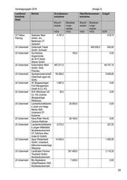 Veranlagungsjahr 2016 (Anlage 2) Landkreis/ Betrieb Grundwasser- Oberflächenwasser- Entgelt kreisfreie entnahme entnahme Stadt Brauch- Bewässe- Brauch- Bewässe- wasser rungs- wasser rungs- wasser wasser m3/a m3/a m3/a m3/a EUR LK Uckermark Barth Hessenhöhe 1.336,1 0,00 GmbH (vormals AC Biogasanlagen Fünf Management GmbH & Co. KG) LK Uckermark Susanne und Elmar 1.010,0 0,00 Ernst, Templin --> neuer Eigentümer Gut Gollin: K.E. Wurth LK Uckermark LVG Kläne-Menke 22.300,0 2.230,00 GmbH & Co. KG, Cloppenburg-Bethen SMA Templin, Hindenburg/Reinfeld LK Uckermark Warther Heide Freilandei GmbH & Co.KG Jakobshagen 27