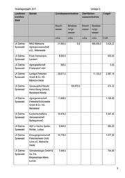 Veranlagungsjahr 2017 (Anlage 3) Landkreis/ Betrieb Grundwasserentnahme Oberflächen- Entgelt kreisfreie wasserentnahme Stadt Brauch- Bewässe- Brauch- Bewässe- wasser rungs- wasser rungs- wasser wasser m3/a m3/a m3/a m3/a EUR Stadt Plauer Landwirtschafts 0,0 0,00 Brandenburg GmbH & Co. KG, a.d.H. Brandenburg a.d.H. c/o Milchgut Bahnitz AG Stadt Domstiftsgüter 11.335,0 0,00 Brandenburg Brandenburg, a.d.H. Brandenburg / Beetzsee- Center Stadt Markendorf Obst e.G. 28.205,0 0,00 Frankfurt/Od Frankfurt (Oder) er Stadt Obstbaubetrieb Karsten 4.567,5 0,00 Frankfurt/Od Schulz, Frankfurt (Oder) er Stadt Neumann's Erntegarten, 24.700,0 0,00 Potsdam Potsdam-Bornim LK Barnim Barnimer Baumschulen 9.763,0 0,00 Biesenthal Hoffnungstaler Werkstätten GmbH LK Barnim Landwirtschaftsbetrieb 54.690,0 0,00 Matthes GbR, Blumberg E.-Stelle Thaerfelde LK Barnim Milchviehhof Klosterfelde 25.500,0 2.550,00 GbR, Wandlitz LK Barnim Kilian GmbH & Co.KG, 6.788,0 0,00 Marienwerder LK Barnim BB Brandenburger Obst 7.582,0 0,00 GmbH, OT Wesendahl, Altlandsberg 1